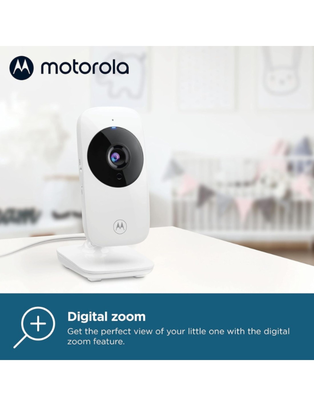 Pantalla de 2,8″: Monitor compacto con buena visibilidad para habitaciones pequeñas. Cámara con visión nocturna: Permite ver al bebé aun en completa oscuridad. Audio bidireccional: Escucha y habla con tu bebé desde la unidad de los padres. Alcance inalámbrico: Hasta 300 metros en espacio abierto, ideal para moverse por la casa. Función de temperatura: Mide y muestra la temperatura en la habitación del bebé. Modo ECO: Ahorra batería al apagar la pantalla cuando no está en uso. Incluye cámara motorizada: Permite mover la cámara desde el monitor (giro horizontal/vertical).