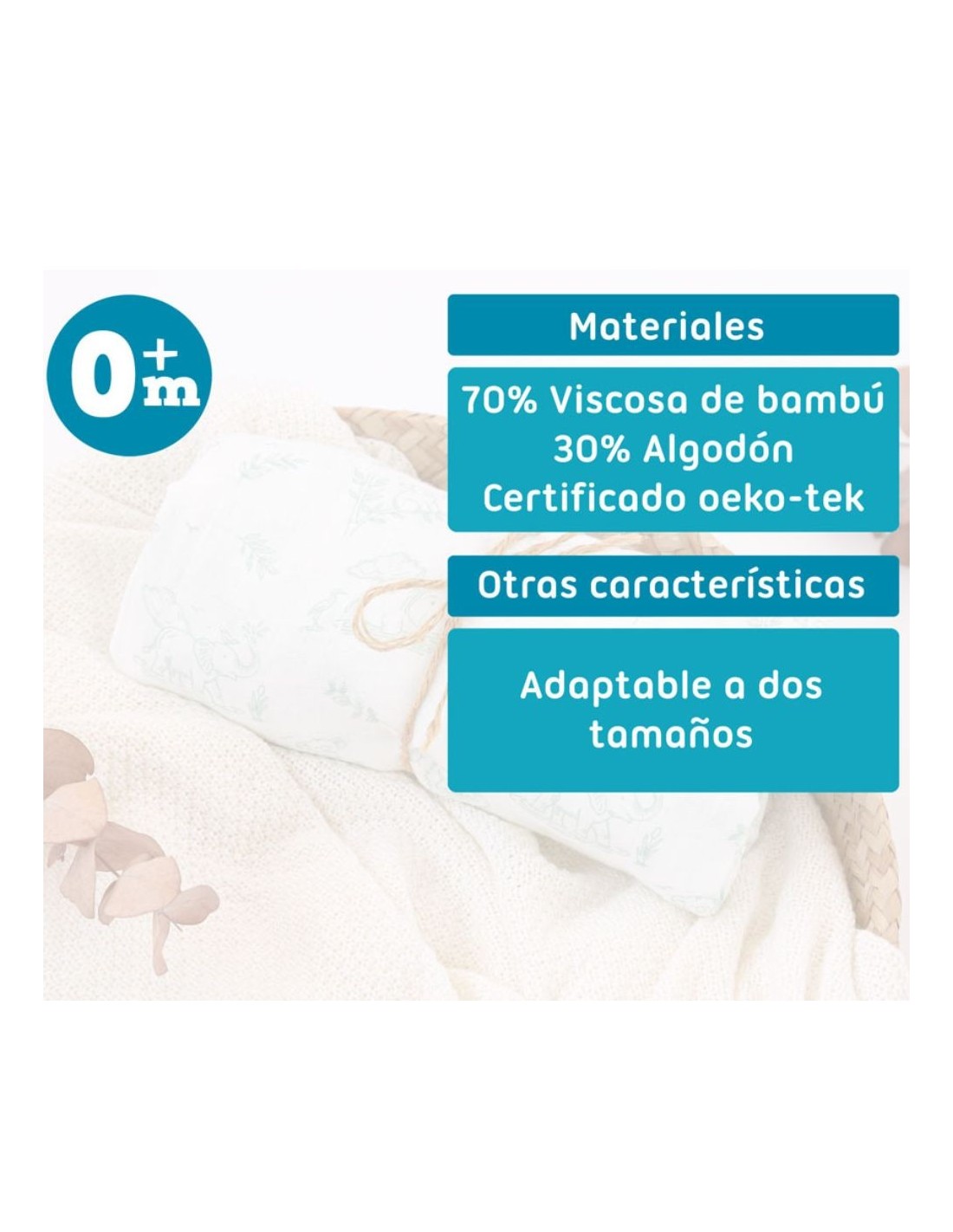 Fabricada con fibra de bambú, destaca por su suavidad, ligereza y capacidad de transpiración, siendo ideal para la piel delicada del recién nacido.