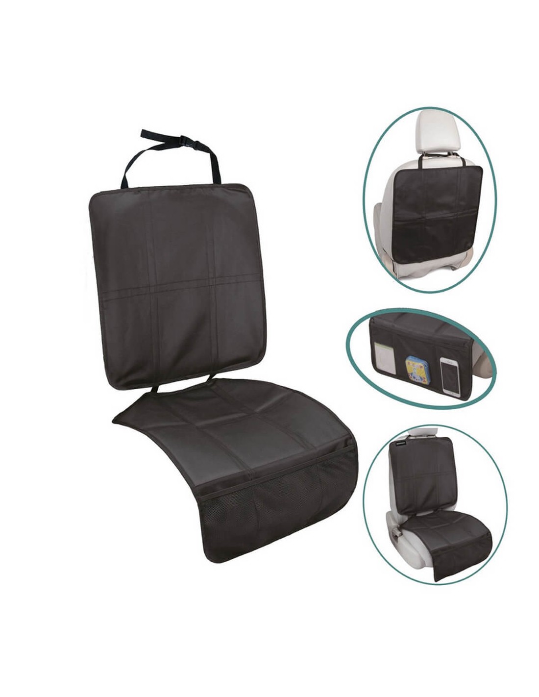 Protege el asiento inferior donde se coloca la silla, el respaldo del asiento delantero y ofrece almacenamiento útil en la parte baja.