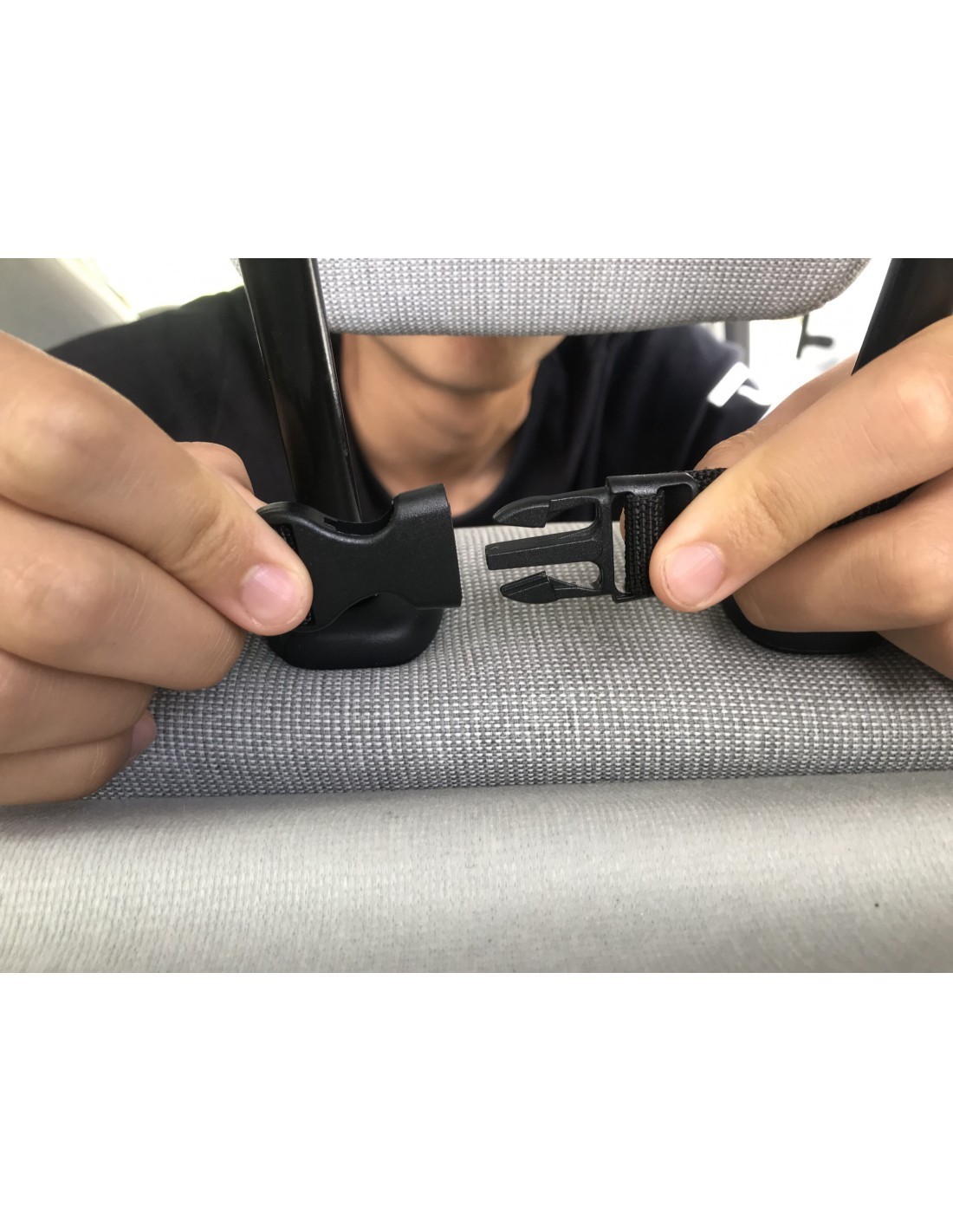 - Ajustar las correas superiores e inferiores al reposacabezas y base del asiento.