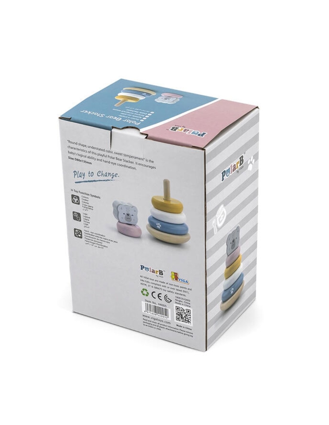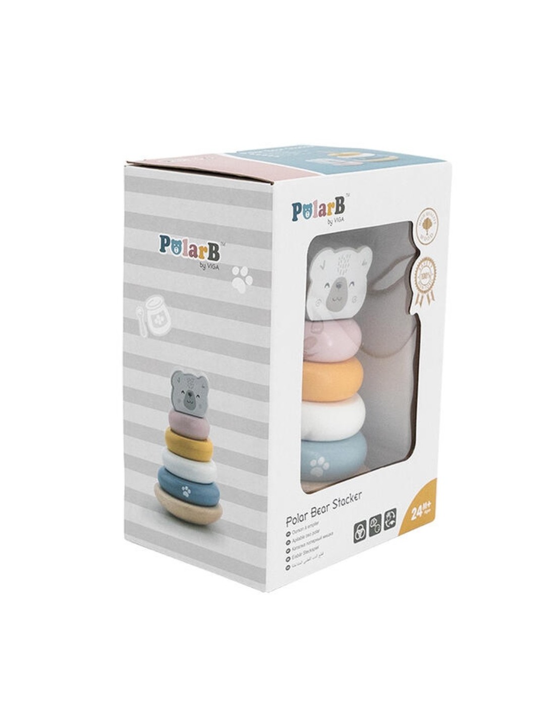 El oso apilable de aros PolarB es un juguete educativo clásico reinventado en un diseño moderno y sostenible. Fabricado en madera FSC con pintura al agua no tóxica, este juguete incluye varios aros de diferentes tamaños y colores que los niños deben ordenar en la base, coronados con la figura de un simpático oso. Ayuda a los pequeños a desarrollar la coordinación mano-ojo, la motricidad fina, la lógica y el reconocimiento de tamaños y colores de forma divertida y segura.