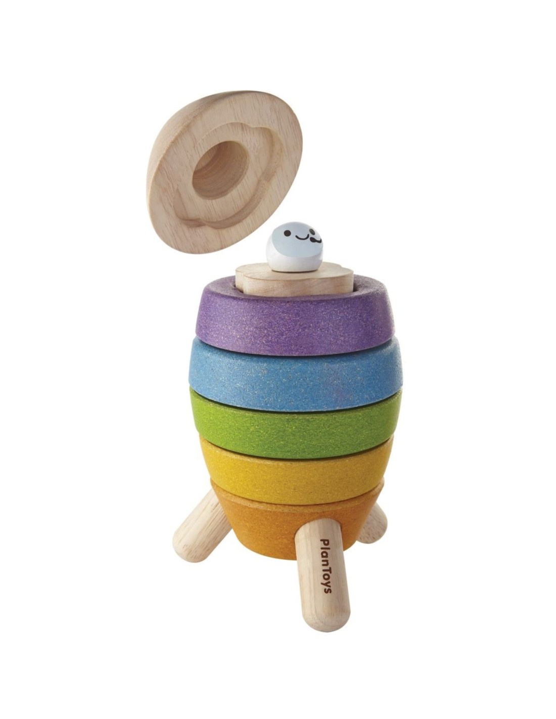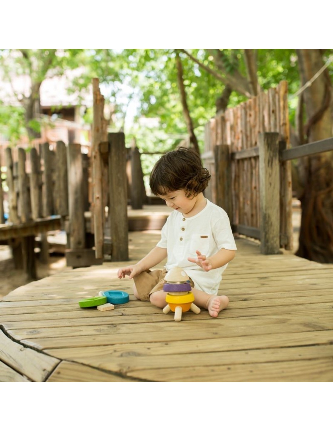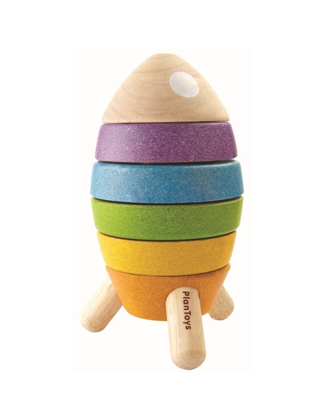 ¡3...2...1... despega la diversión! El Cohete Apilable Plantoys invita a los pequeños astronautas a construir su propio cohete apilando y emparejando las piezas de madera. Una vez montado, solo queda colocar al astronauta en su asiento y comenzar la cuenta atrás.