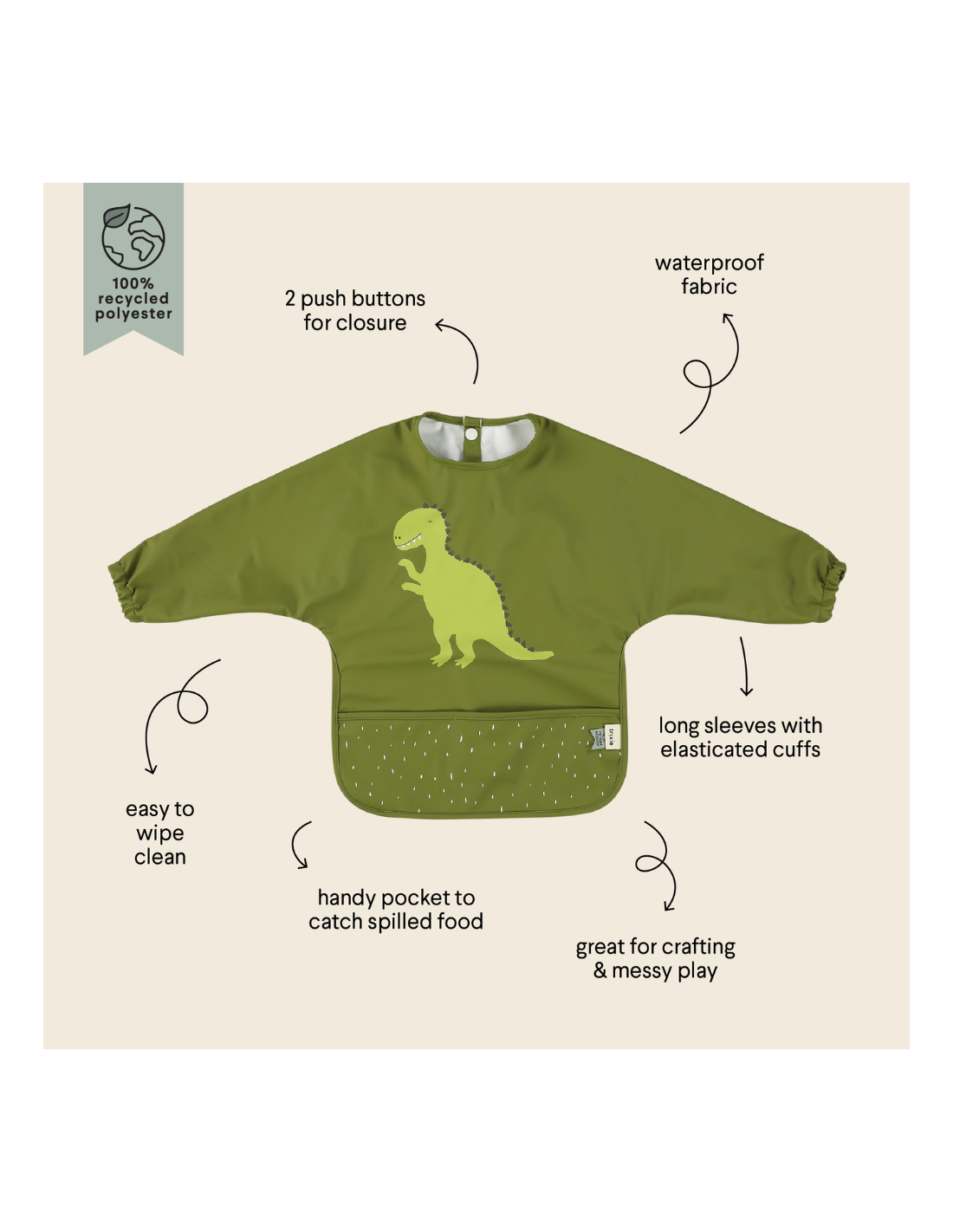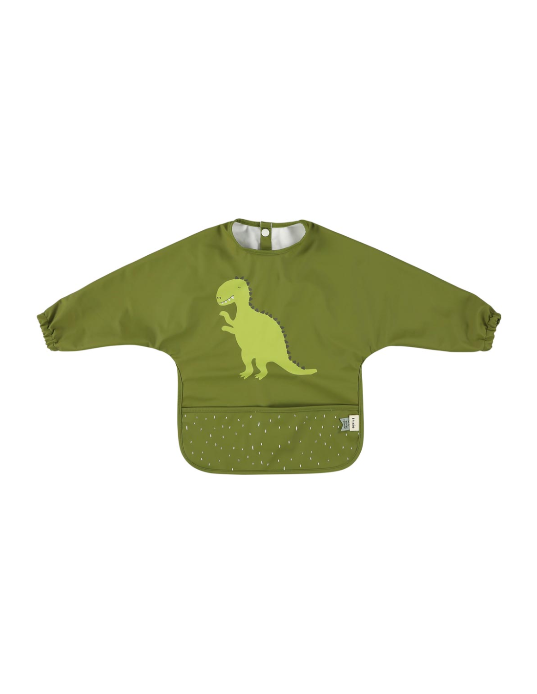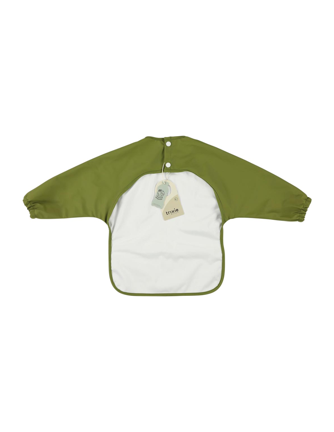 El Babero con Mangas Dinosaurio Verde Trixie está diseñado para ofrecer la máxima comodidad y protección durante las comidas, actividades artísticas o juegos sensoriales.