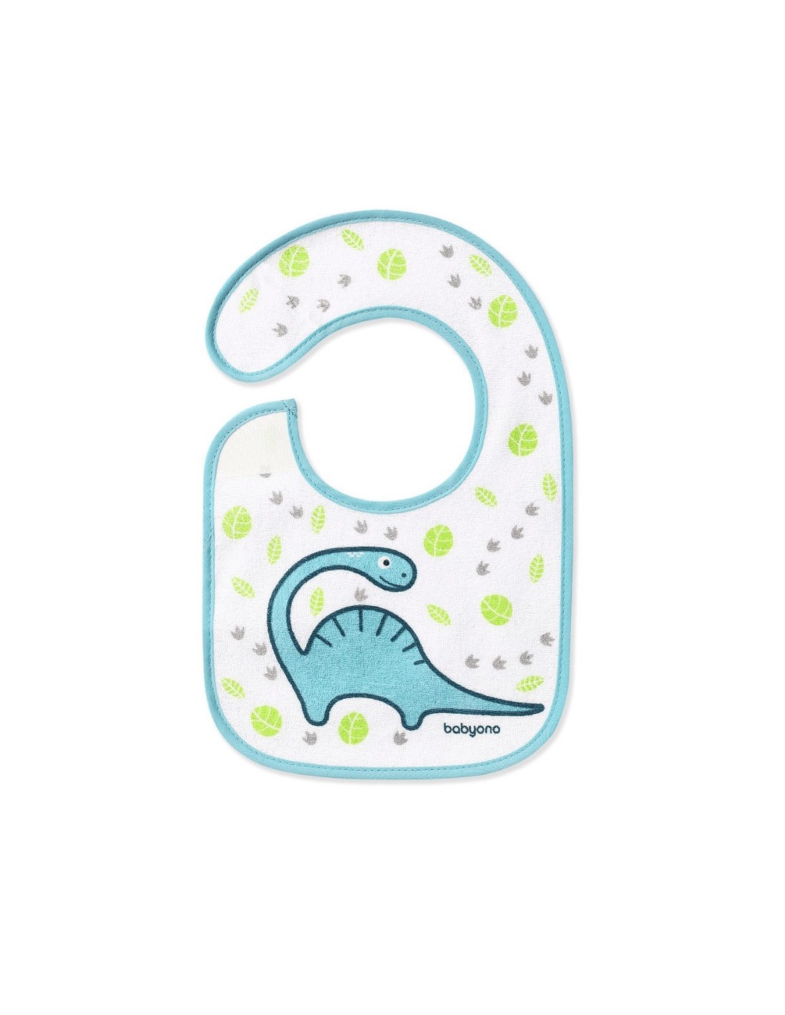 El babero de rizo BabyOno dinosaurio azul "Eat and I Grow" es práctico, absorbente y alegre. Está fabricado con algodón de rizo de alta calidad, que retiene líquidos y restos de comida, manteniendo la ropa del bebé limpia y seca. Su diseño en color azul, con un simpático dinosaurio estampado y la frase “Eat and I Grow”, lo convierte en un accesorio funcional y divertido para la rutina de alimentación del bebé