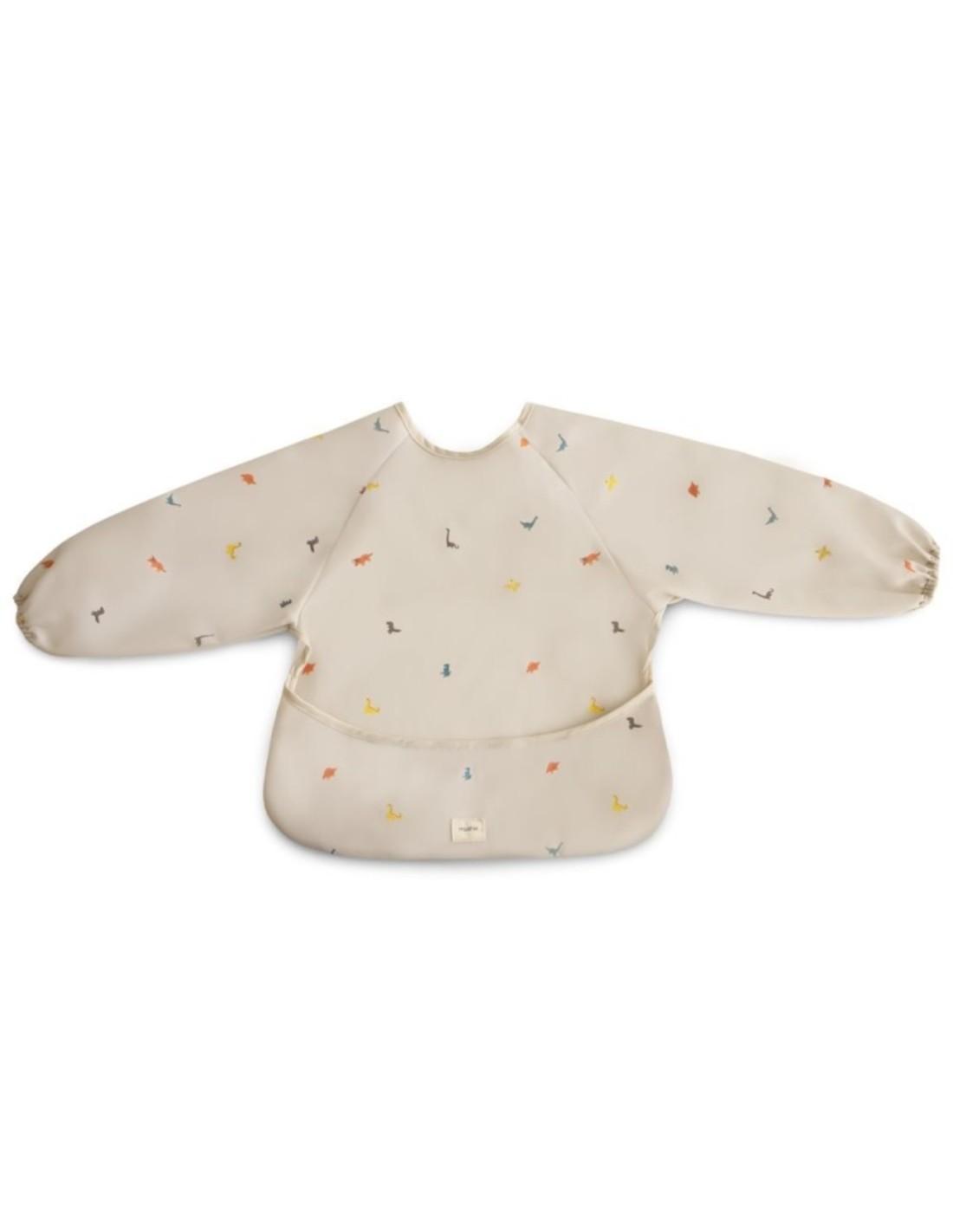 Babero con mangas Mushie – Dinos (36x40 cm): Un babero impermeable y reutilizable diseñado para mantener al bebé limpio durante las comidas o las actividades creativas.