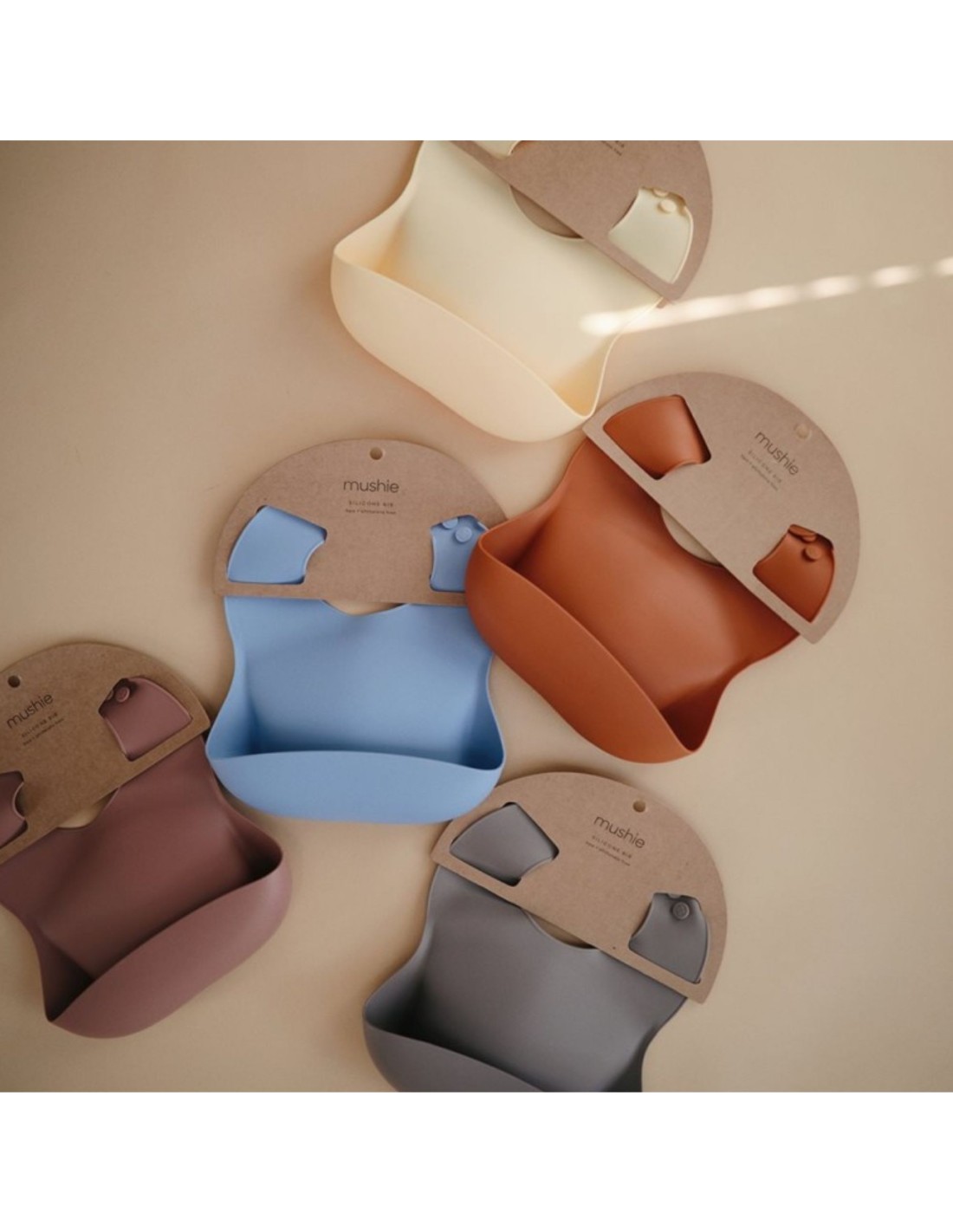 Babero Silicona solid azul 26,5x3,5cm Mushie