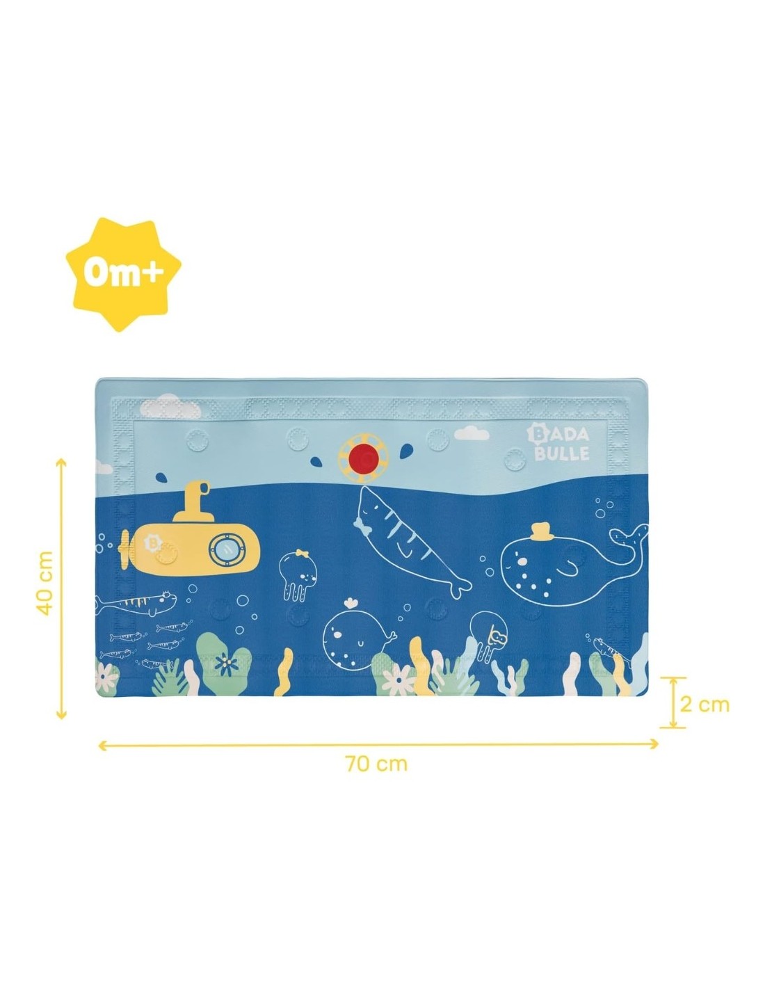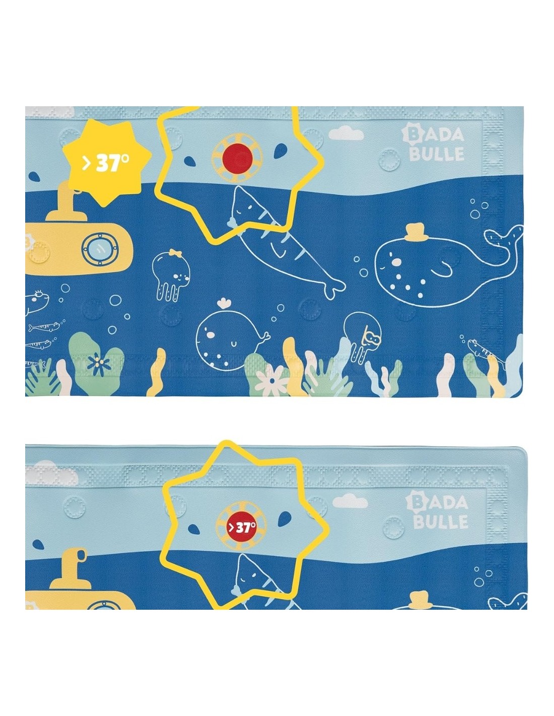 La Alfombrilla de baño con indicador de temperatura Badabulle está diseñada para aportar seguridad y confort en el momento del baño del bebé. Gracias a su superficie antideslizante y ventosas de sujeción, evita resbalones en la bañera. Además, incorpora un indicador visual de temperatura, que cambia de color para advertir si el agua está demasiado caliente, garantizando así un baño seguro y agradable.