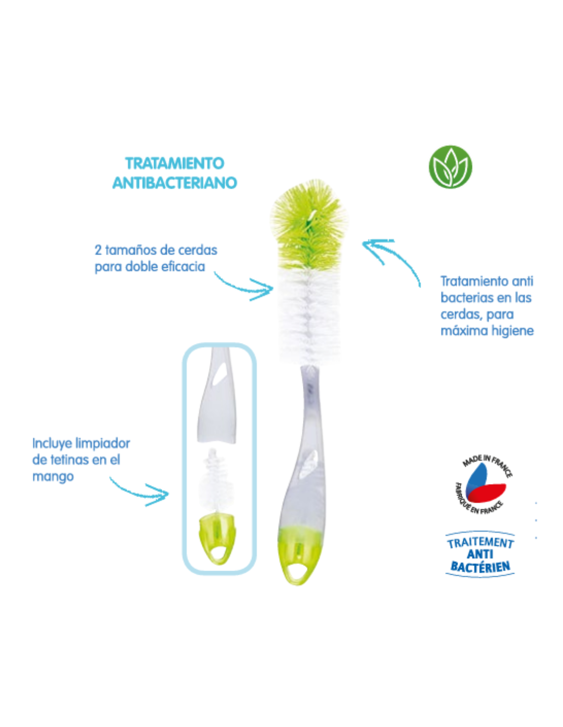 - Incluye limpiador de tetinas en el mango.