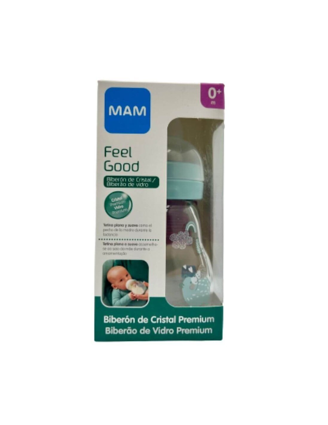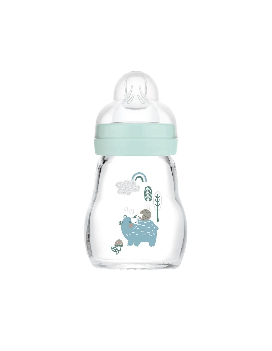 El Biberón MAM Cristal 170 ml (color azul) está fabricado en vidrio de borosilicato, un material natural, higiénico y muy resistente al calor, libre de BPA/BPS. Su formato de 170 ml es ideal para recién nacidos y tomas pequeñas.