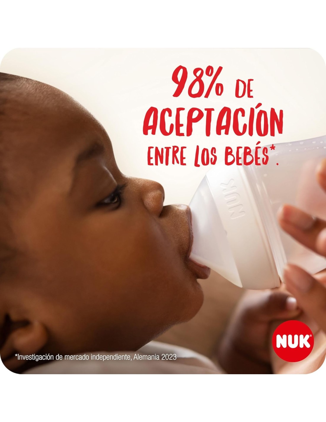 Flujo M para líquidos de densidad media. Si el bebé se esfuerza o tarda demasiado, valora un flujo superior compatible NUK. - ¿Es compatible con otras tetinas NUK?