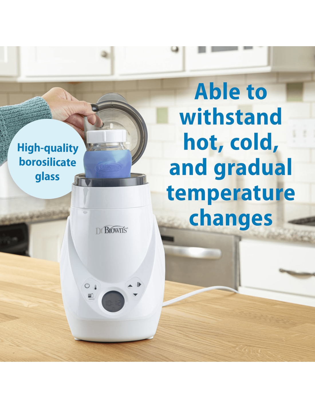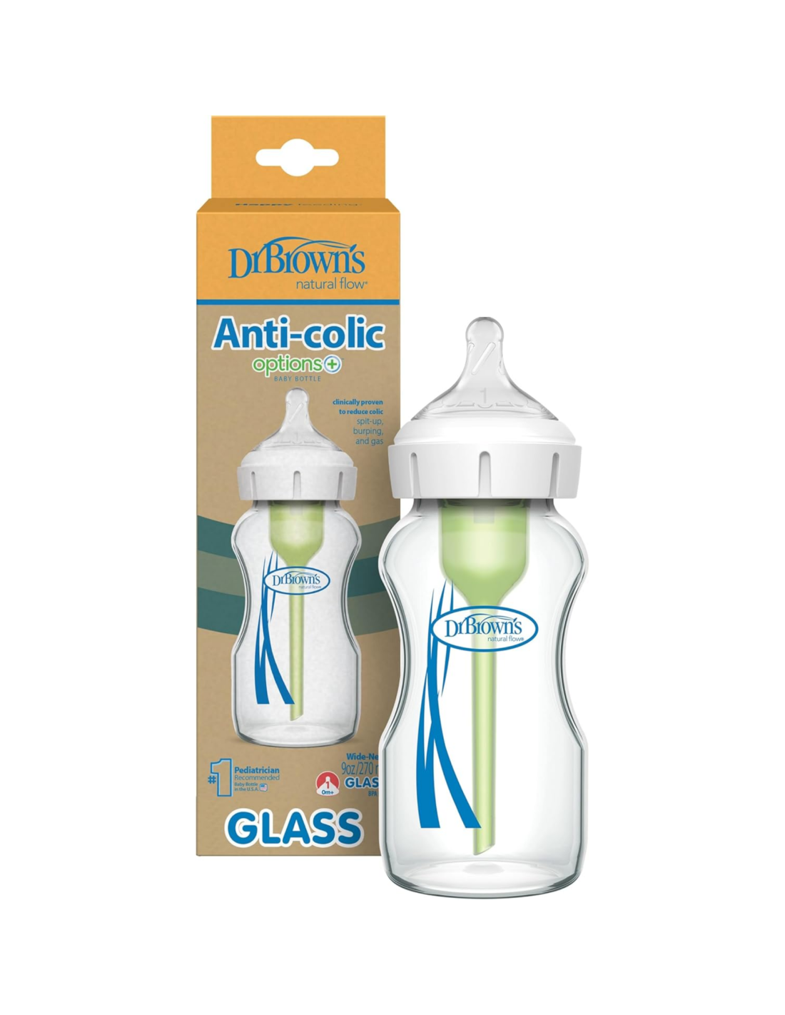 El Biberón de Cristal Boca Ancha Options+ 270 ml Dr. Brown’s está diseñado para ofrecer una alimentación más cómoda, natural y saludable para el bebé. Su sistema anticólicos patentado elimina las burbujas de aire durante la toma, reduciendo cólicos, gases, hipo y regurgitaciones. Fabricado en vidrio borosilicato de alta resistencia, es un biberón duradero, seguro y respetuoso con el medio ambiente. Su tetina de silicona médica imita el flujo natural del pecho materno, facilitando la lactancia combinada sin alterar el ritmo de succión del bebé.