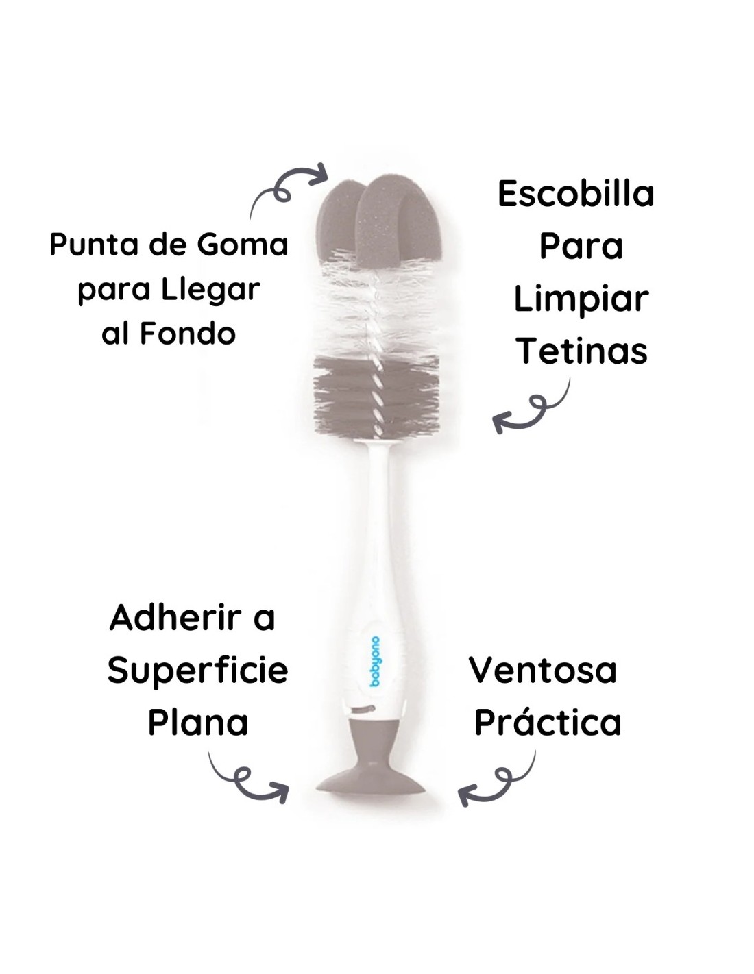 Escobilla para tetinas incluida: integrada en el mango, ideal para limpiar las zonas más delicadas.