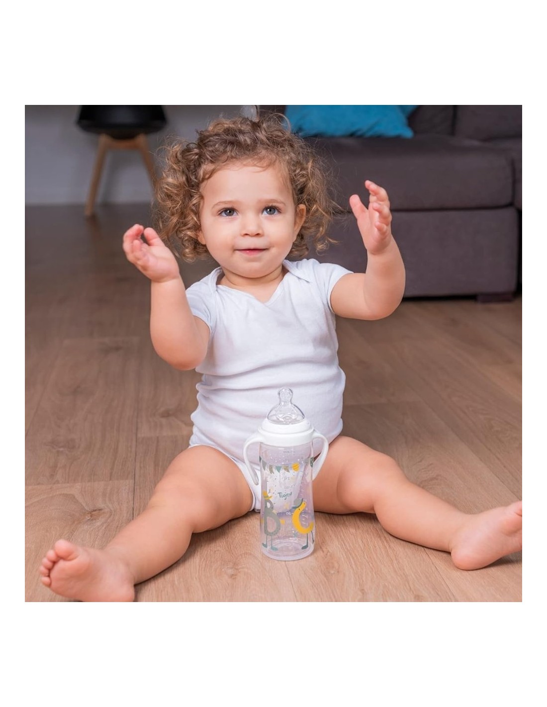 El Biberón Tigex Transition+ 6M+ 360 ml ofrece una alimentación natural y fluida para bebés a partir de los seis meses, combinando comodidad, higiene y control del flujo. Su tetina de silicona de grado alimentario con válvula anticólicos reduce la ingestión de aire, ayudando a prevenir gases y molestias digestivas. El cuerpo del biberón, fabricado en polipropileno (PP) libre de BPA y BPS, es ligero, duradero y resistente, con boca ancha para facilitar el llenado y la limpieza.