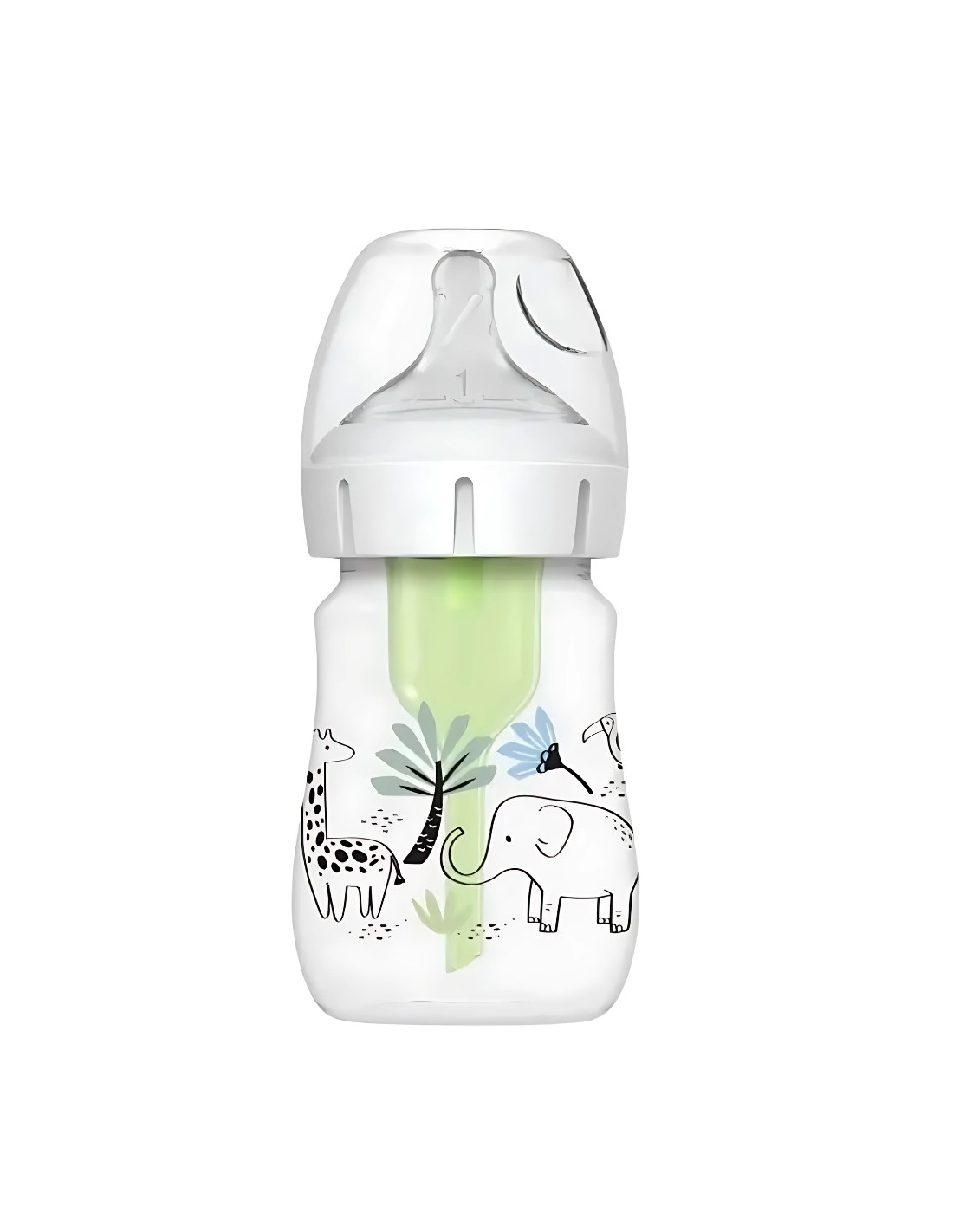 Biberón Dr. Brown’s Options+ jungla 150 ml. Con sistema de ventilación interna anticólicos. Reduce gases y cólicos, ideal para recién nacidos y lactancia combinada.