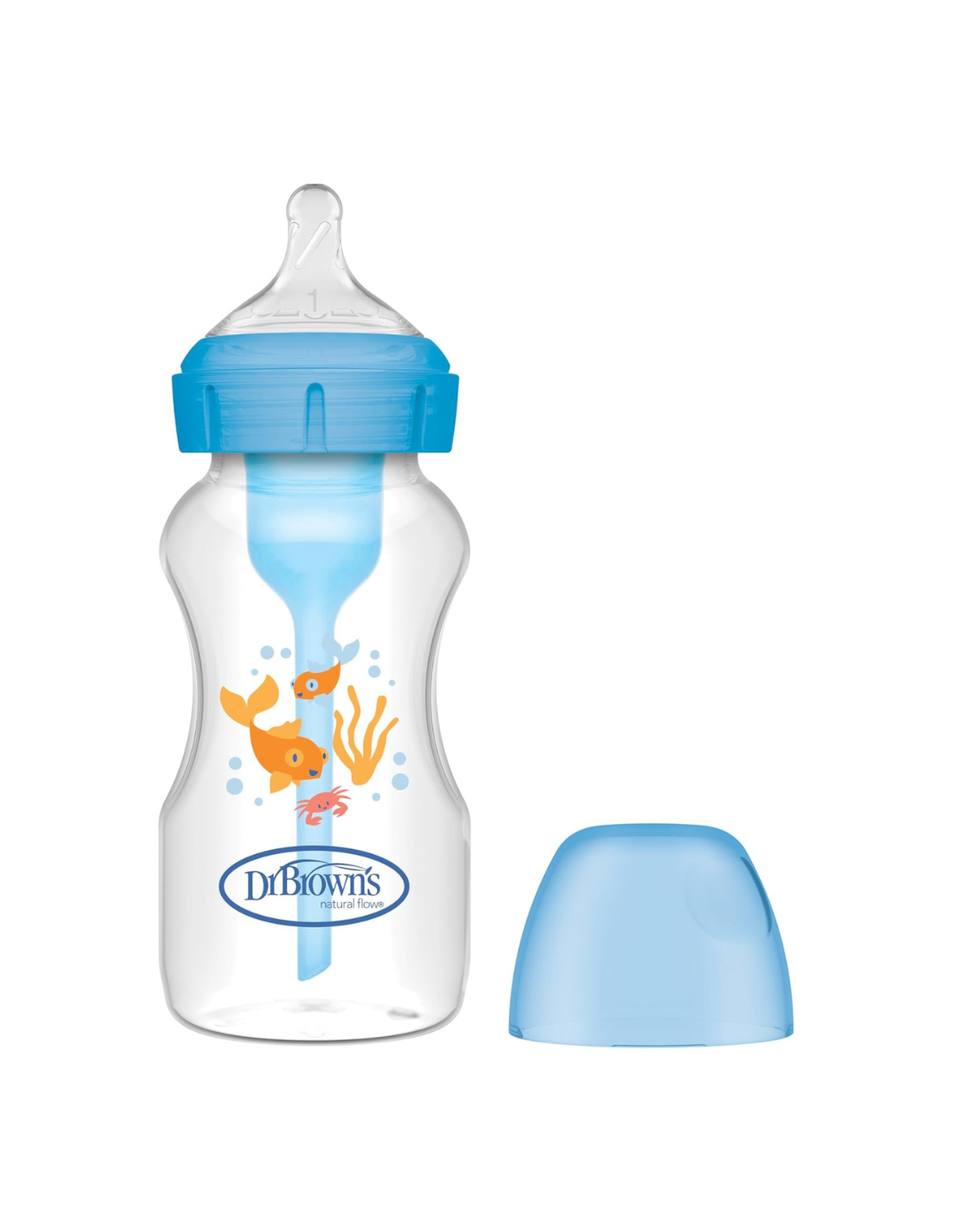 El Biberón Boca Ancha Options+ Azul Anticólicos 270 ml Dr. Brown’s ofrece una alimentación más tranquila, natural y sin molestias para el bebé. Su exclusivo sistema de ventilación interna patentado evita que el aire se mezcle con la leche, reduciendo de forma eficaz los cólicos, gases, hipo y regurgitaciones.