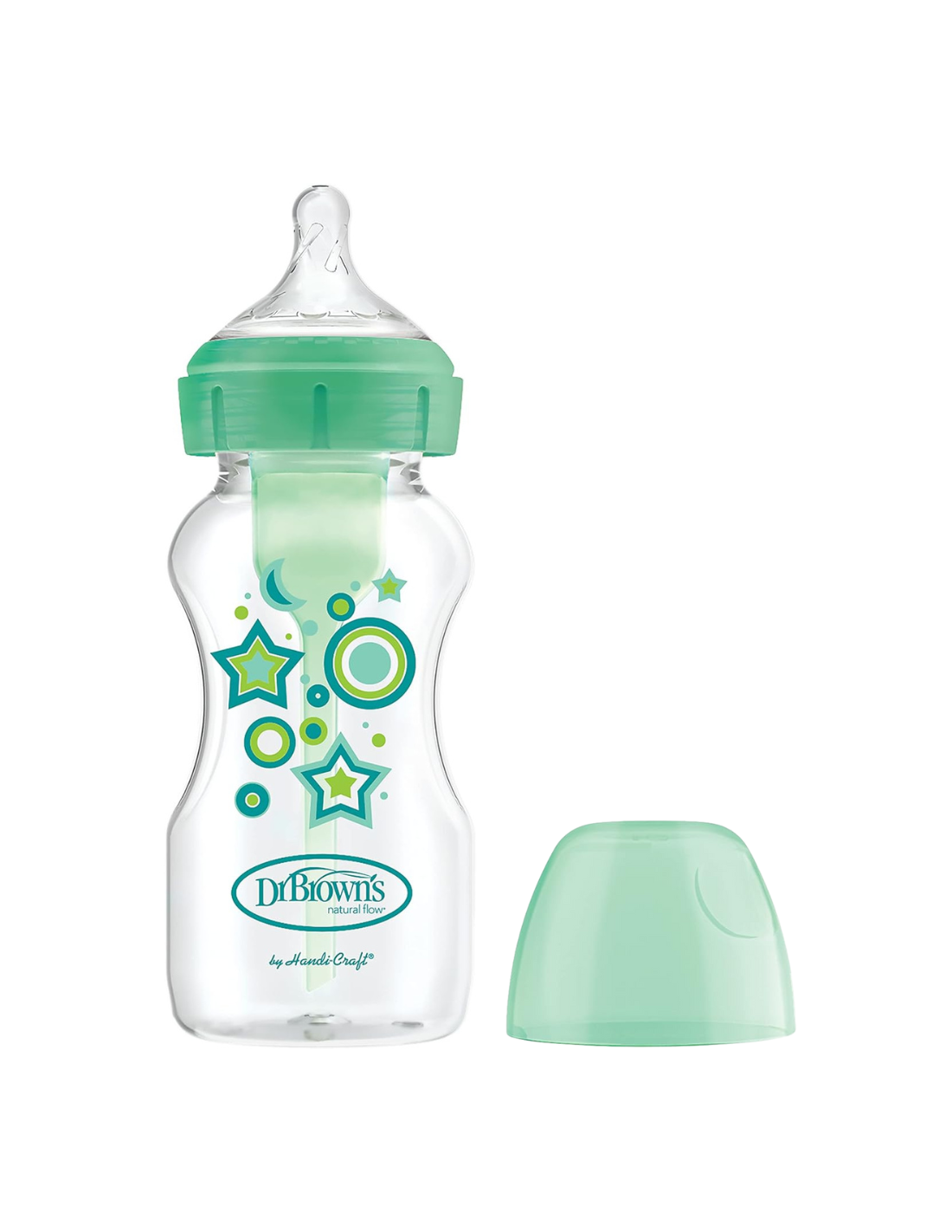 El Biberón Boca Ancha Options+ Verde Anticólicos 270 ml Dr. Brown’s ofrece una alimentación más cómoda y saludable para el bebé. Gracias a su sistema de ventilación interna patentado, evita que el aire se mezcle con la leche, reduciendo significativamente los cólicos, gases, hipo y regurgitaciones. Su diseño de boca ancha y tetina de silicona ultra suave imita la forma del pecho materno, lo que facilita la combinación de lactancia materna y biberón.