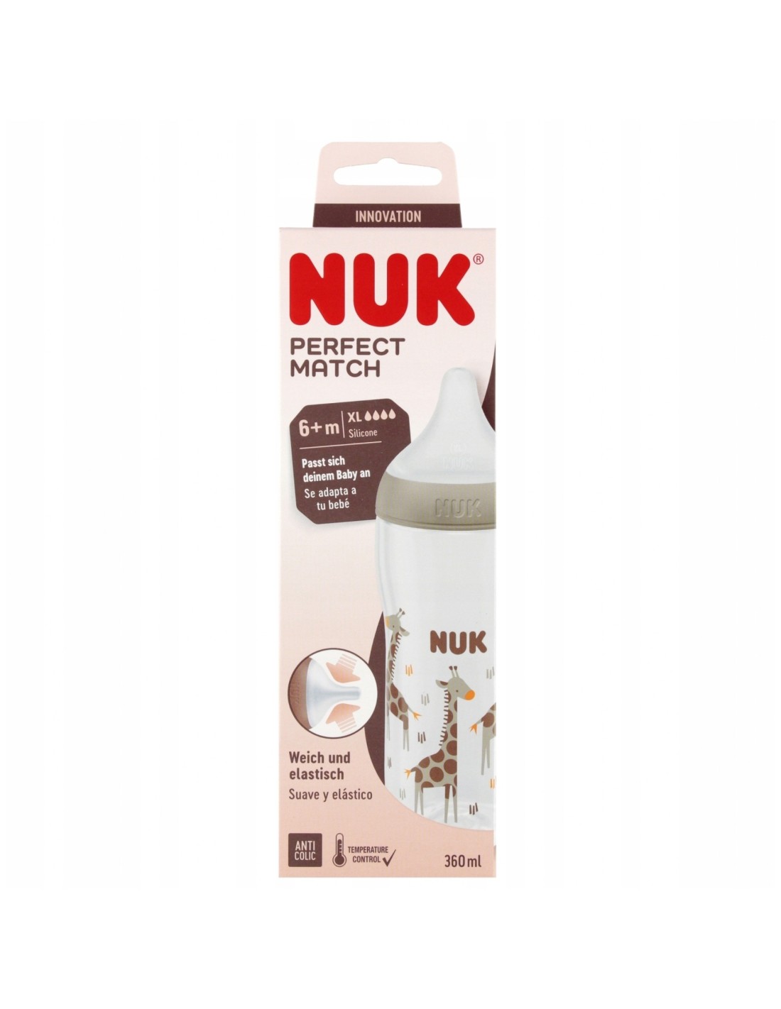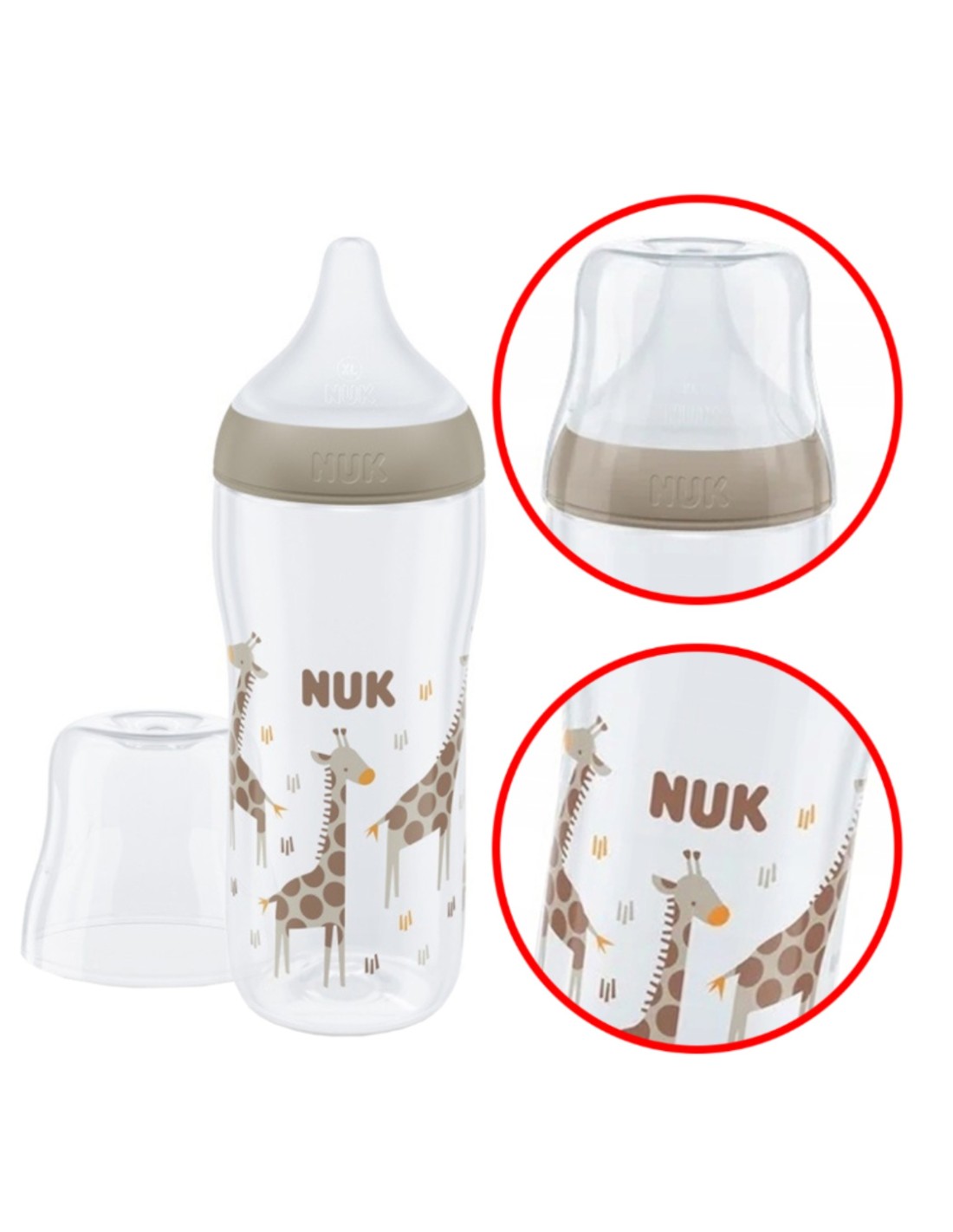 Descubre el encanto natural del Biberón NUK Perfect Match Jirafa 360 ml +3M, un diseño inspirado en la elegancia de la jirafa, con suaves tonos cálidos que aportan estilo y ternura a la rutina diaria de tu bebé.