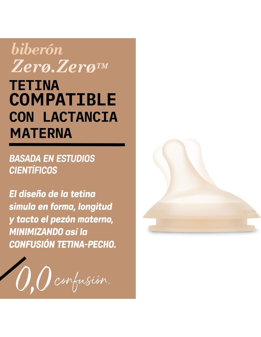 Su sistema de bolsa interior anticólicos funciona de manera similar al pecho materno, evitando la formación de burbujas de aire. La tetina fisiológica SX Pro imita la forma del pezón y favorece la succión natural, facilitando la lactancia mixta.
