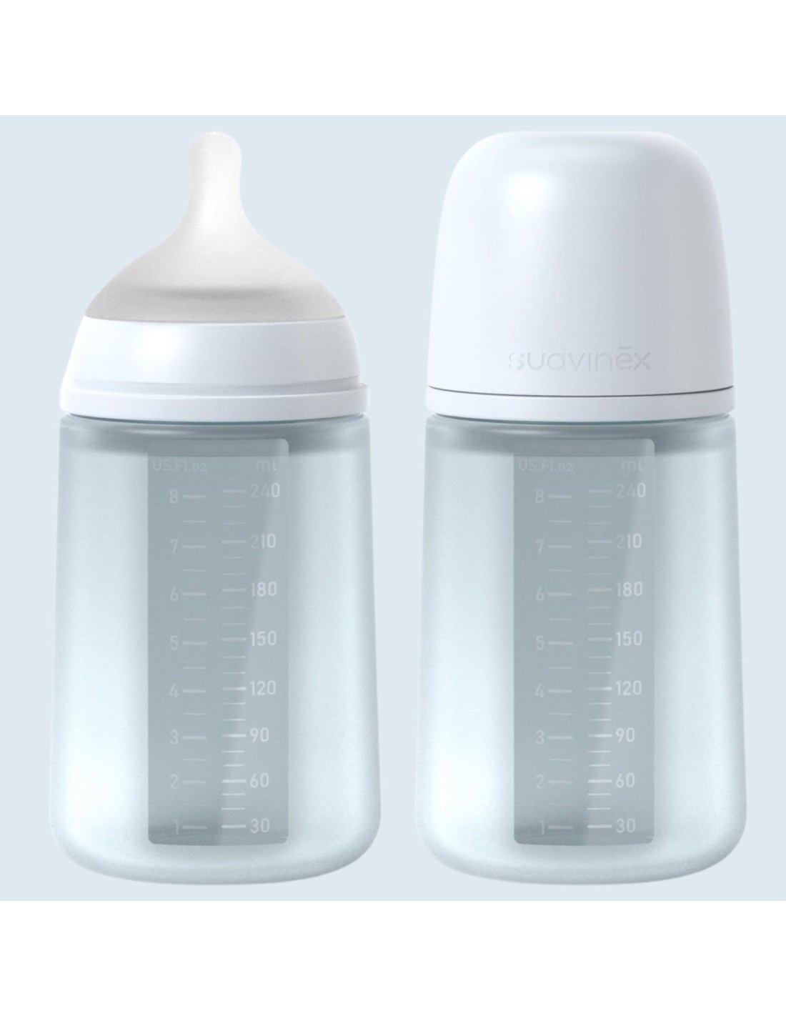 El Biberón Suavinex Silicona 240 ml combina innovación, seguridad y diseño para acompañar la alimentación del bebé en la etapa a partir de los 3 meses.