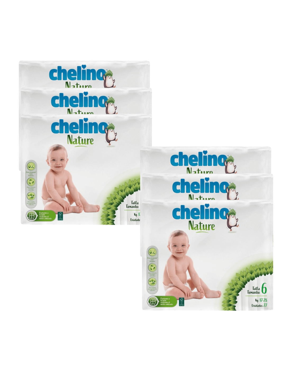 Pack 6 Pañales Chelino Nature Talla 6 (de 17 a 28 kg) - 162 unidades
