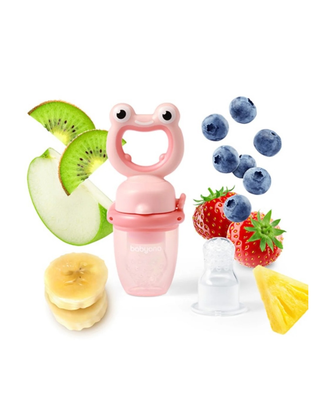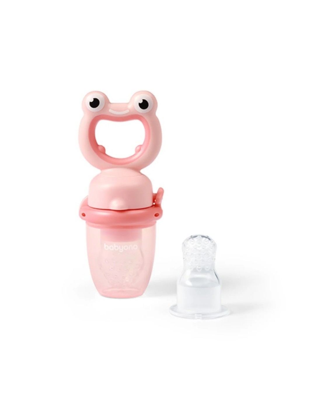 El alimentador antiahogo BabyOno Rana está diseñado para que los bebés puedan introducirse en la alimentación complementaria con total seguridad. Gracias a su malla de silicona con pequeños orificios, el bebé puede succionar jugos y pequeños trozos de fruta sin riesgo de atragantamiento. El divertido diseño en forma de rana verde lo convierte en un accesorio atractivo, mientras que su mango ergonómico facilita el agarre por manos pequeñas.