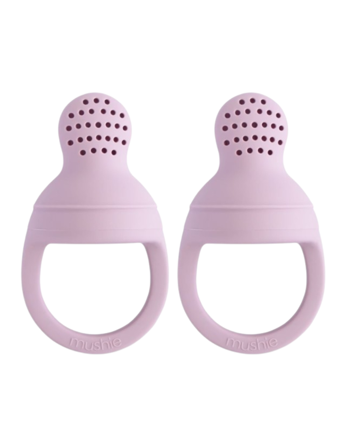 Pack de 2 alimentadores de silicona Mushie: Diseñados para introducir al bebé en la alimentación complementaria de forma segura, permitiéndole descubrir sabores y texturas sin riesgo de atragantamiento.