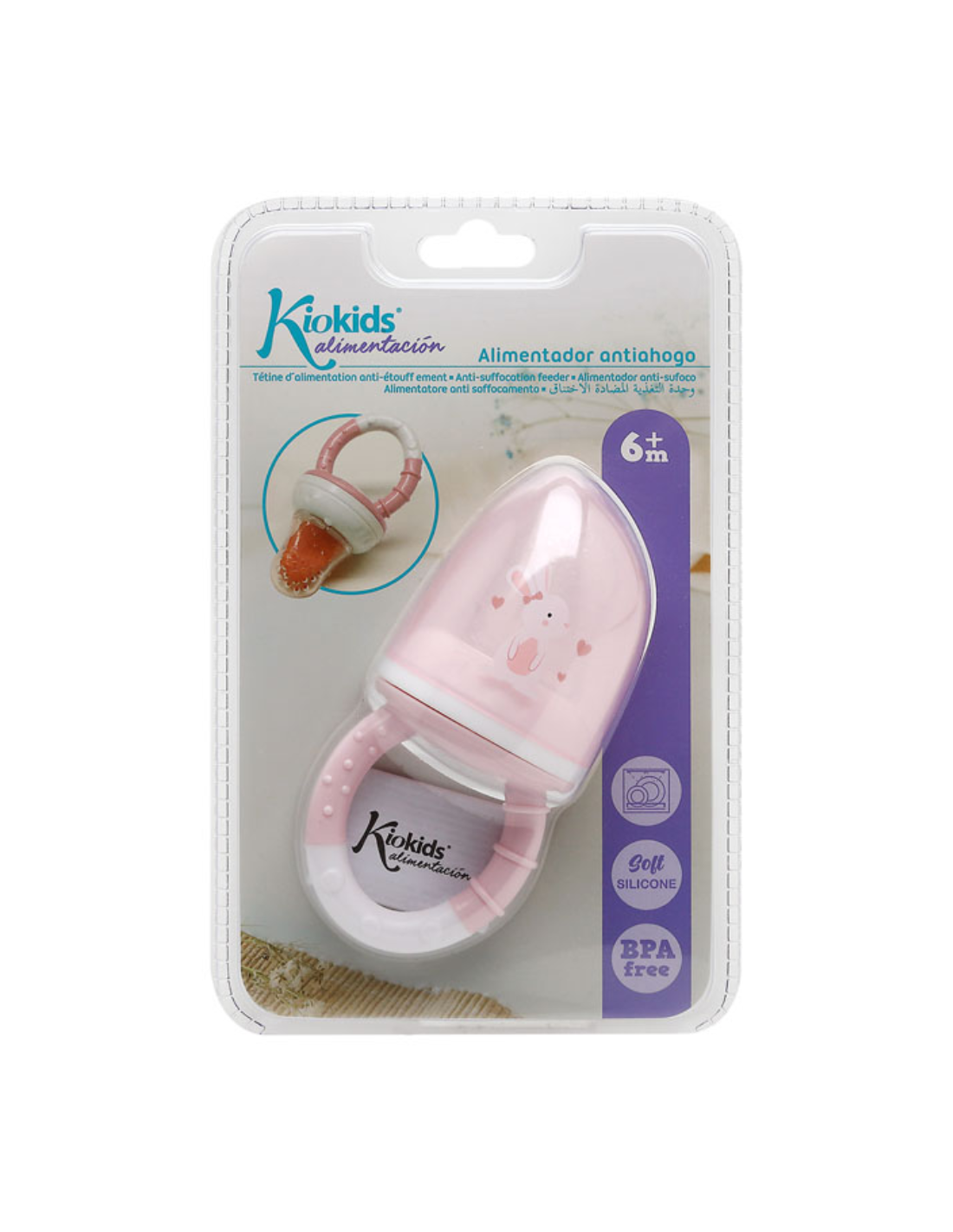 Alimentador antiahogo rosa en silicona bebé +6 meses kiokids