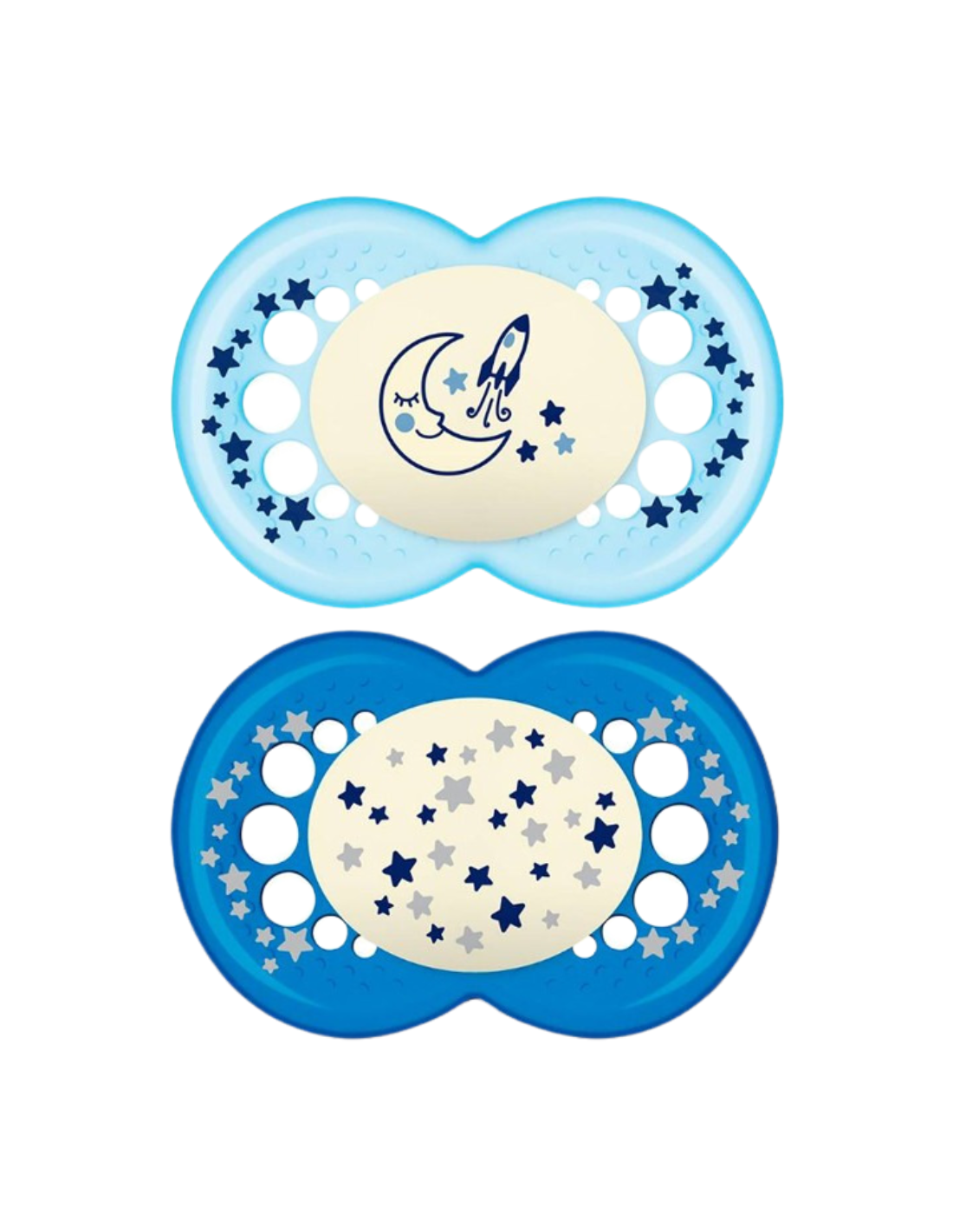 El Chupete Original Night Mam Baby combina innovación y comodidad. Sus discos brillan hasta 7 horas, siempre que se expongan previamente a luz natural o artificial, gracias a los minerales presentes en el botón. La tetina simétrica de silicona , suave y segura, se adapta perfectamente a la boca del bebé para favorecer su desarrollo bucal. Diseñado pensando en la piel sensible, dispone de grandes orificios de ventilación y los exclusivos hoyitos MAM, que minimizan las irritaciones. Su diseño ergonómico y ligero asegura el máximo confort durante el uso. Este pack de dos chupetes viene acompañado de una cajita esterilizadora, ideal para mantener los chupetes limpios y listos para usar en cualquier momento.