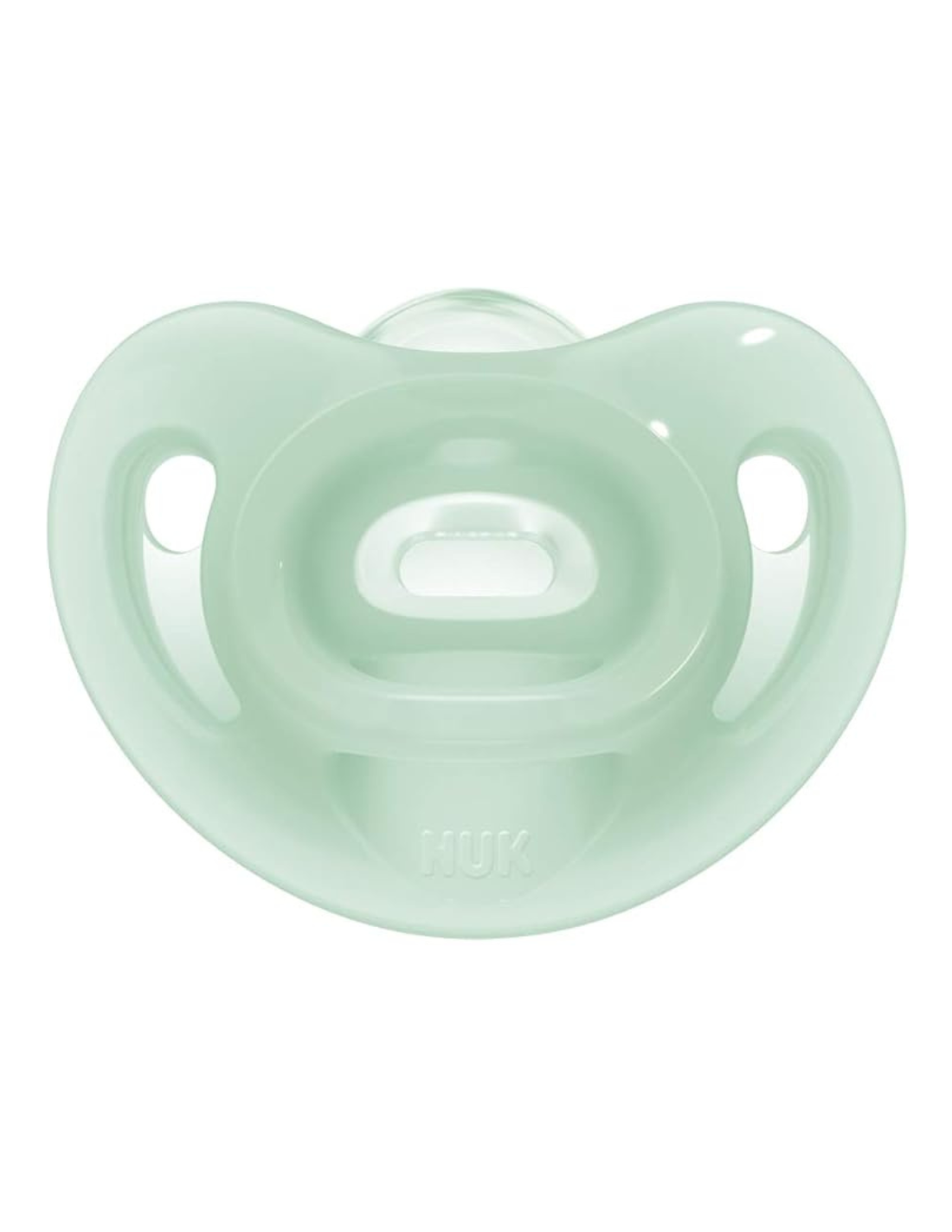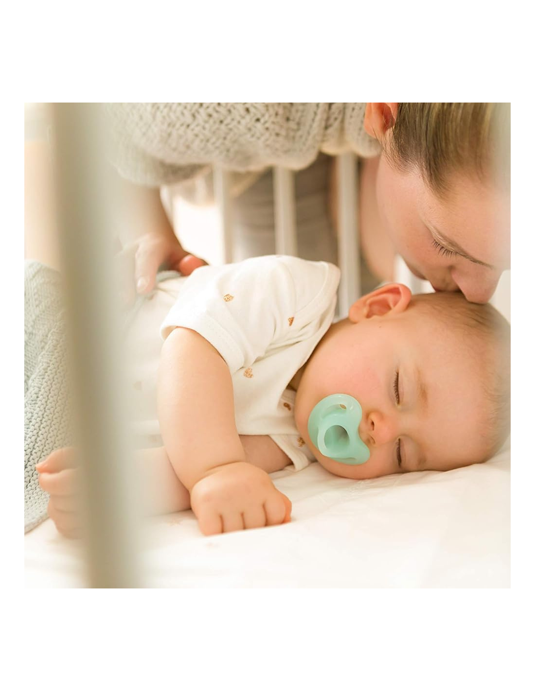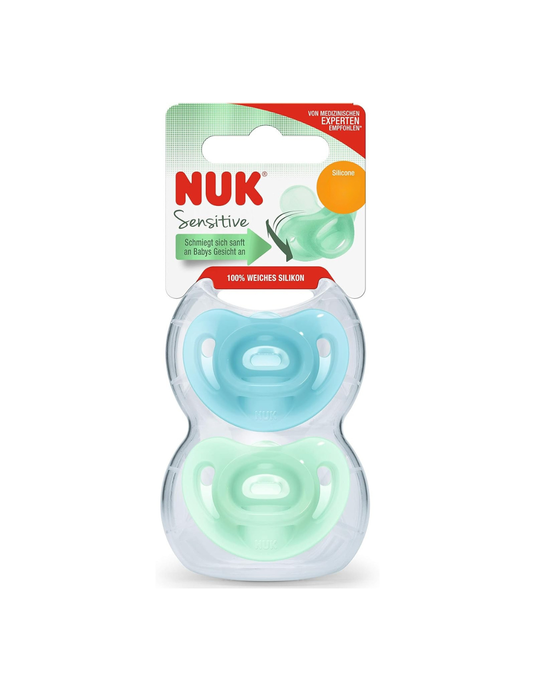 El Pack de chupetes NUK Sensitive azul y verde (6–18 meses) está especialmente diseñado para bebés con piel sensible. Fabricados en una sola pieza de silicona ultrasuave, se adaptan de forma natural al rostro del bebé, sin dejar marcas y con una textura flexible que resulta muy agradable para el paladar. Su forma ortodóntica NUK favorece un desarrollo saludable de la mandíbula y simula la sensación de succión natural.