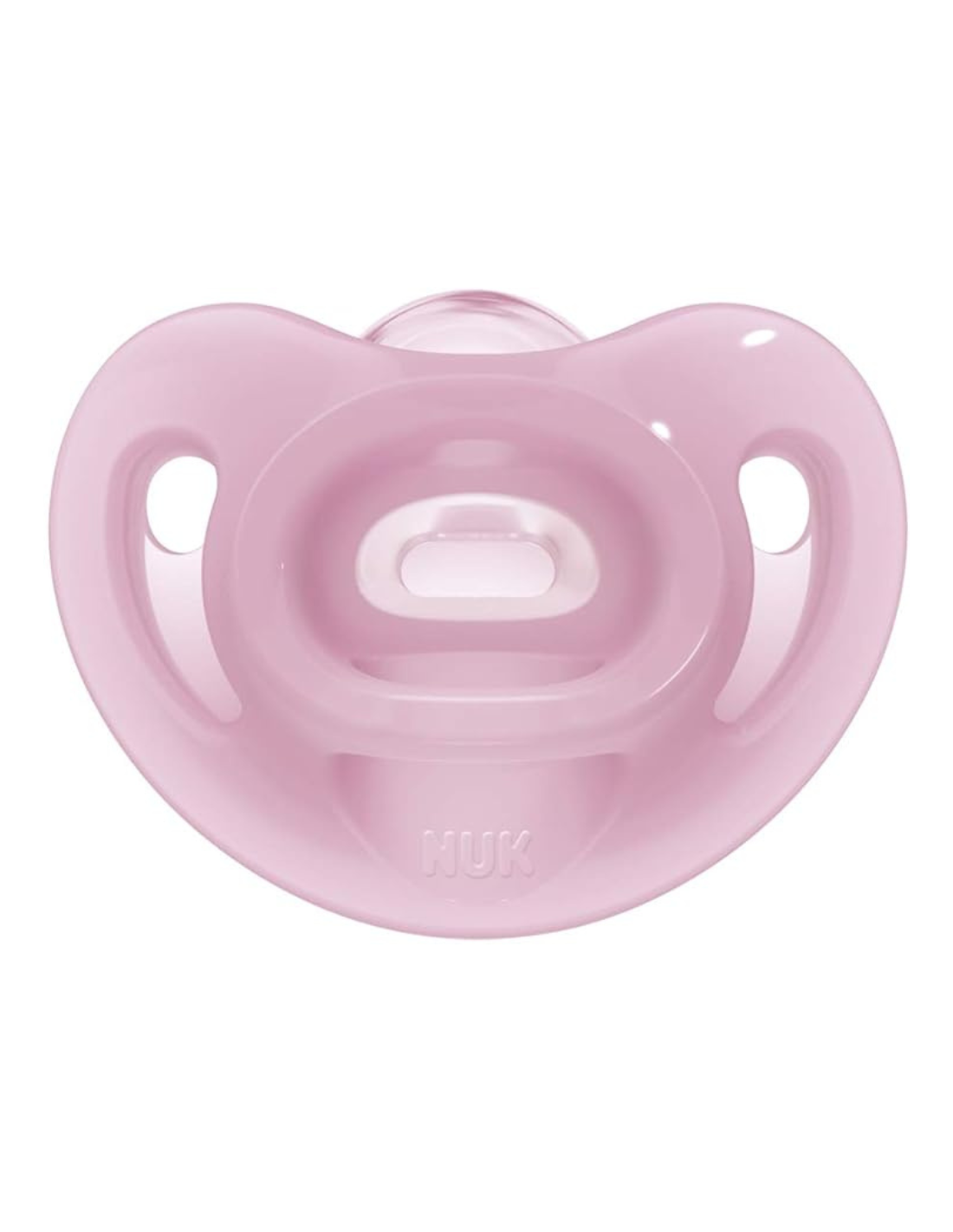 El Pack de chupetes NUK Sensitive lila y rosa (6–18 meses) está diseñado especialmente para la piel sensible del bebé. Fabricados completamente en silicona ultrasuave y flexible, ofrecen una sensación natural y suave, adaptándose perfectamente al rostro sin dejar marcas. Su forma ergonómica y ortodóntica favorece un desarrollo saludable de la mandíbula y se adapta a la boca del bebé respetando el paladar.