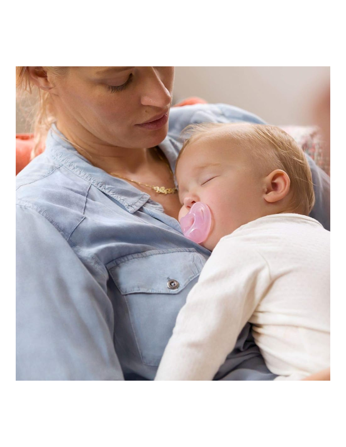Los chupetes Sensitive están fabricados con silicona de alta calidad , suave y flexible, lo que hace ideales para pieles delicadas, ya que se ajustan perfectamente sin dejar marcas. Su tetina imita el pezón materno , ofreciendo una experiencia natural que reduce la presión en la mandíbula y ayuda a prevenir problemas de alineación dental. El protector en forma de corazón se adapta cómodamente bajo la nariz del bebé, permitiendo una respiración fluida y cómoda. Estos chupetes son libres de BPA, lo que garantiza la seguridad del bebé, y su diseño permite esterilizarlos en el microondas , asegurando una higiene perfecta. El estuche incluido no solo protege los chupetes, sino que también es reutilizable, brindando una solución práctica para llevarlos a cualquier lugar.