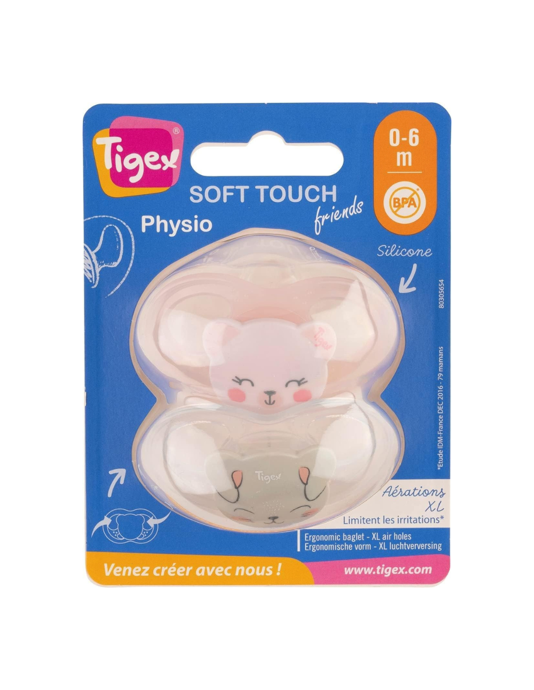 El Pack de Chupetes Tigex Soft Touch 0–6M Osa y Conejo ha sido diseñado para ofrecer una succión natural, suave y segura desde el nacimiento. Su tetina anatómica de silicona Soft Touch reproduce la sensación del pezón materno, ayudando al bebé a calmarse sin interferir en el desarrollo bucodental. El escudo ventilado permite una buena circulación de aire alrededor de la boca, evitando irritaciones, mientras que su diseño ligero y ergonómico facilita que el bebé lo mantenga sin esfuerzo.