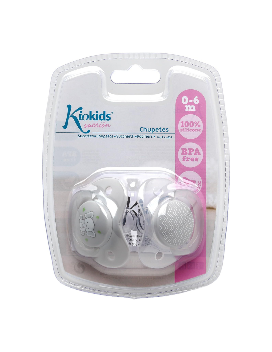 El Pack 2 chupetes tetina ortodóntica 0–6 m Kiokids está diseñado para favorecer una posición natural de la lengua y ayudar al desarrollo bucodental del bebé. Incluye 2 unidades con tetina de silicona suave y escudo ligero con orificios de ventilación para cuidar la piel.