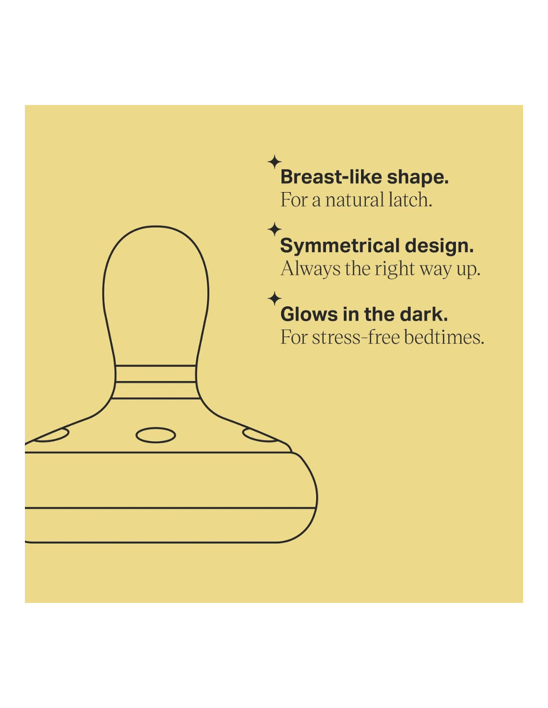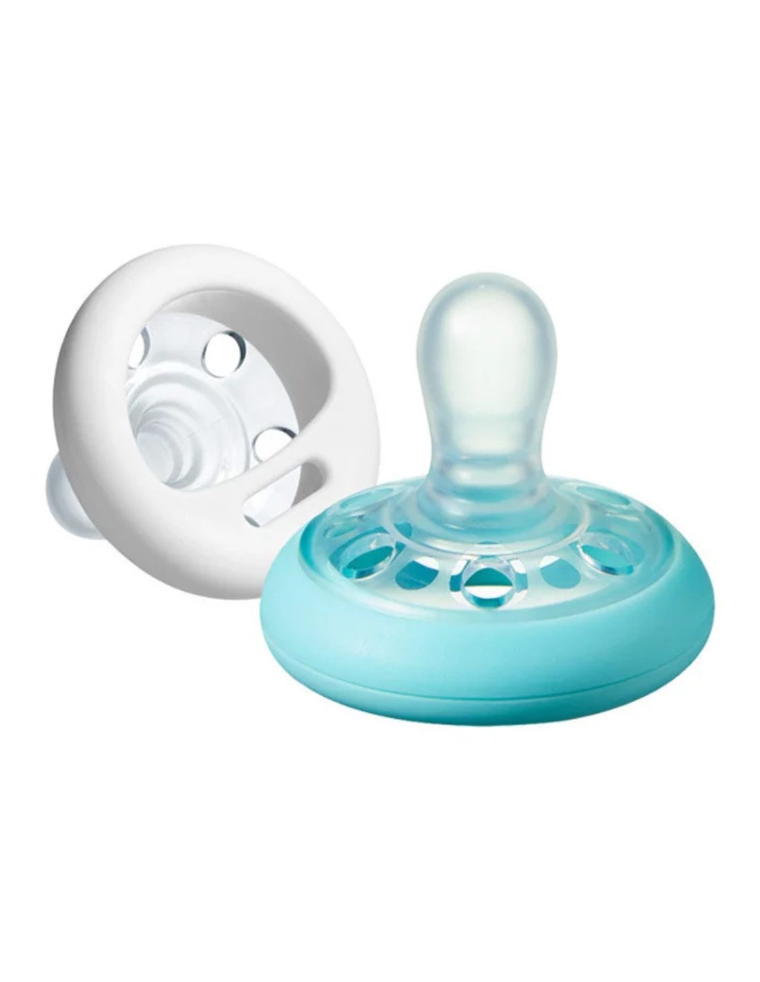 El diseño de los chupetes está pensado para brindar comodidad y seguridad. Su tetina de silicona suave, similar al tacto de la piel, se flexiona y estira para calmar al bebé de forma natural. La base redondeada mejora la circulación del aire, evitando irritaciones en la piel delicada del bebé. Además, están libres de BPA, garantizando una opción segura para tu pequeño. Inspirados en la tetina Closer to Nature, estos chupetes facilitan la transición del pecho al chupete y no afectan el desarrollo de la boca ni los dientes del bebé.