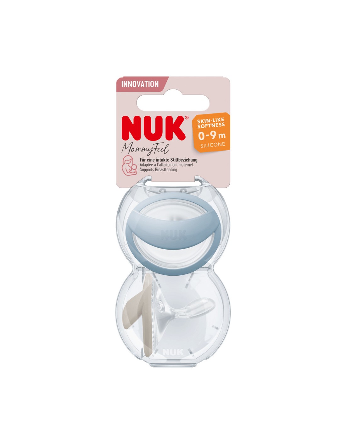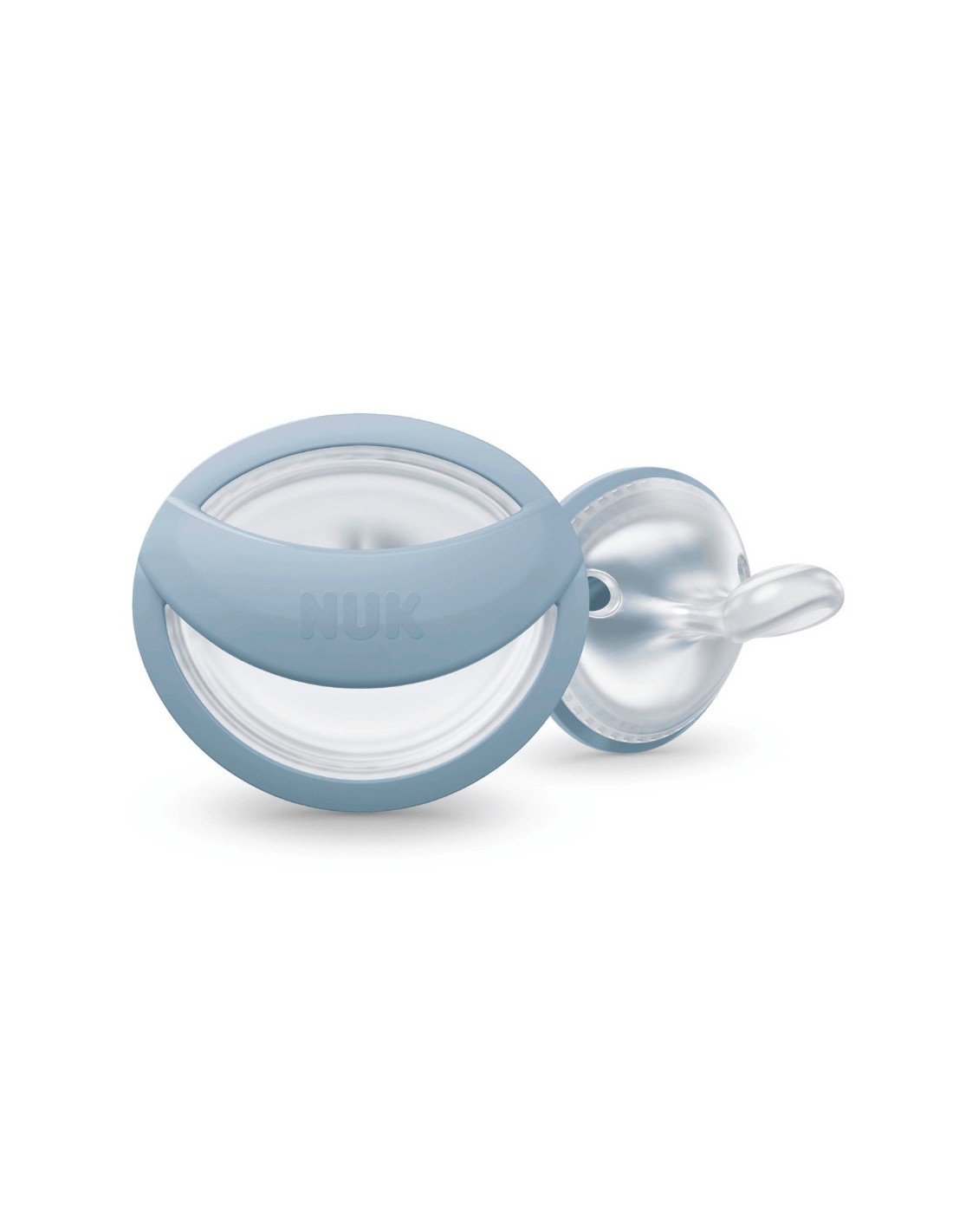 El Chupete NUK Mommy Feel azul-gris – pack 2 (0–9 M) está diseñado para ofrecer una sensación extra suave y una experiencia de succión lo más natural posible en los primeros meses. Su tetina de silicona fisiológica/ortodóntica se adapta al paladar y deja espacio para la lengua, favoreciendo un desarrollo bucodental saludable. El escudo ligero y curvado con aberturas de ventilación ayuda a mantener la piel seca y a reducir irritaciones.