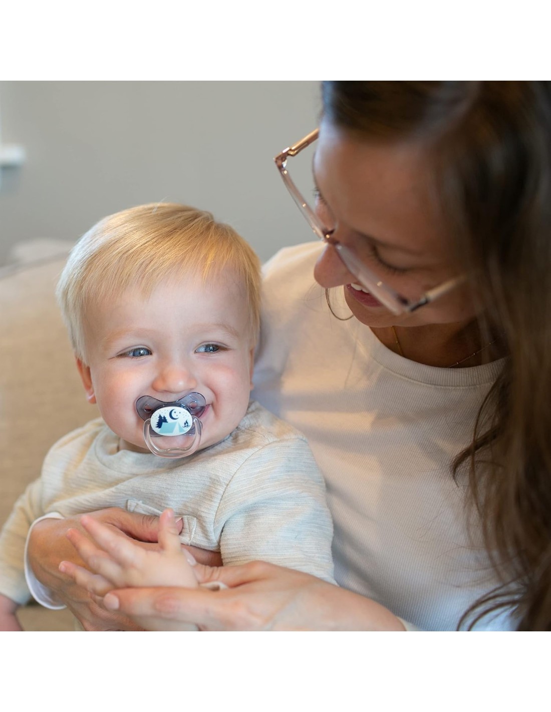 El Chupete Prevent Nocturno 6-18M Dr. Brown’s está diseñado por odontopediatras para reducir la presión en el paladar durante la succión, protegiendo el desarrollo bucodental del bebé. Su tetina ortodóntica de silicona médica tiene una base delgada y una cavidad de aire que minimiza la presión sobre el paladar y la mandíbula. Además, su exclusivo diseño brilla en la oscuridad, ayudando a los padres a encontrarlo fácilmente durante la noche sin encender la luz.