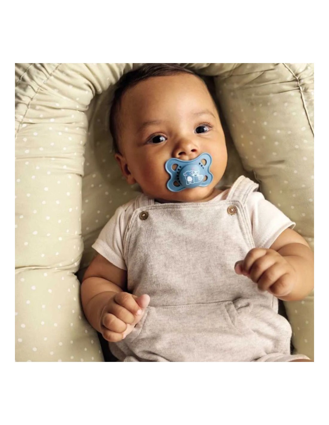 Antes del primer uso, se recomienda esterilizar el chupete en agua hirviendo durante 5 minutos o utilizar el estuche de esterilización incluido, que permite desinfectar el chupete en microondas de forma rápida y segura . Se recomienda sustituir el chupete cada 1 o 2 meses por razones de higiene y seguridad.