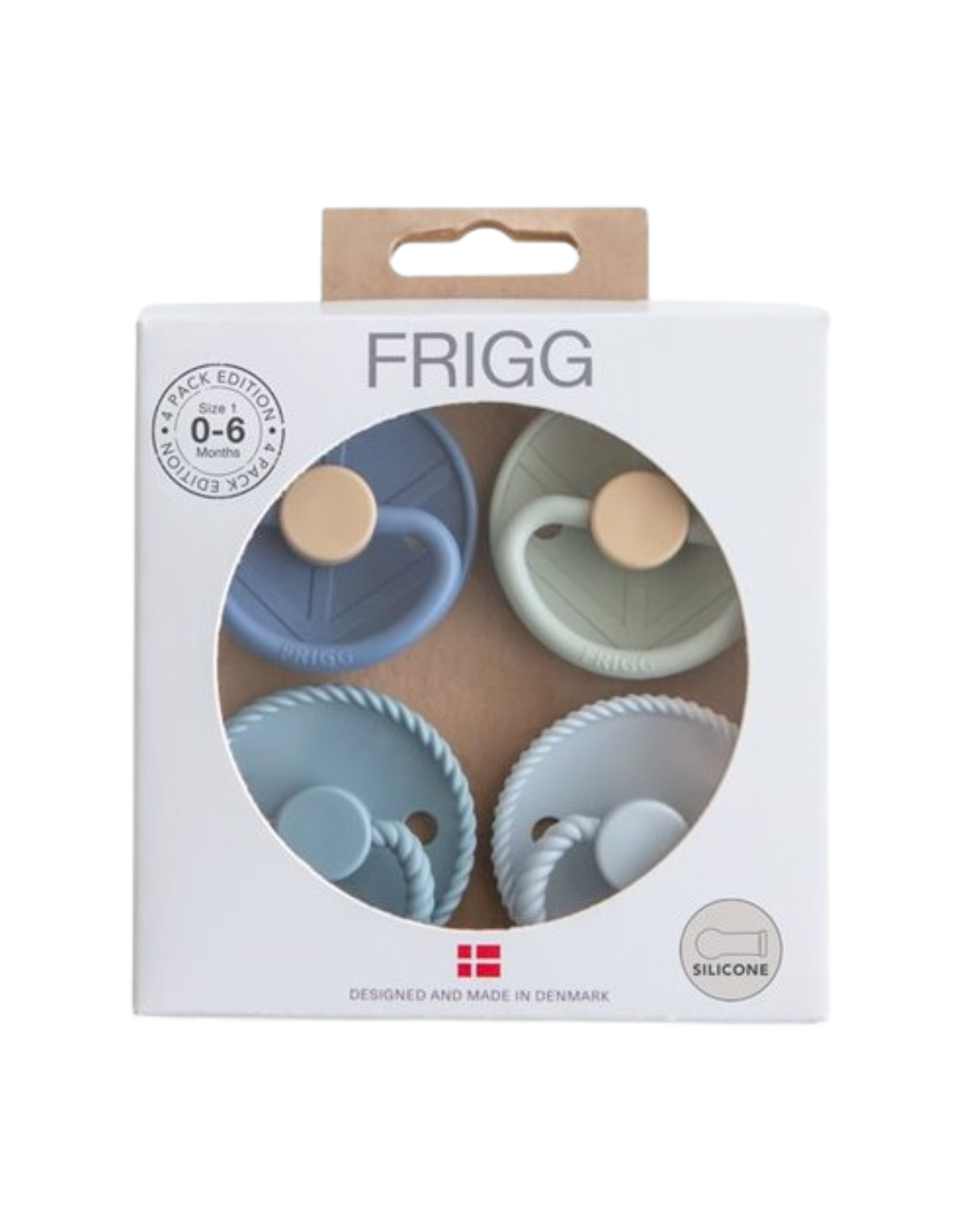 Fabricados en Dinamarca, los chupetes FRIGG cumplen con la normativa europea EN1400 y están libres de BPA, ftalatos y PVC, garantizando la seguridad absoluta.