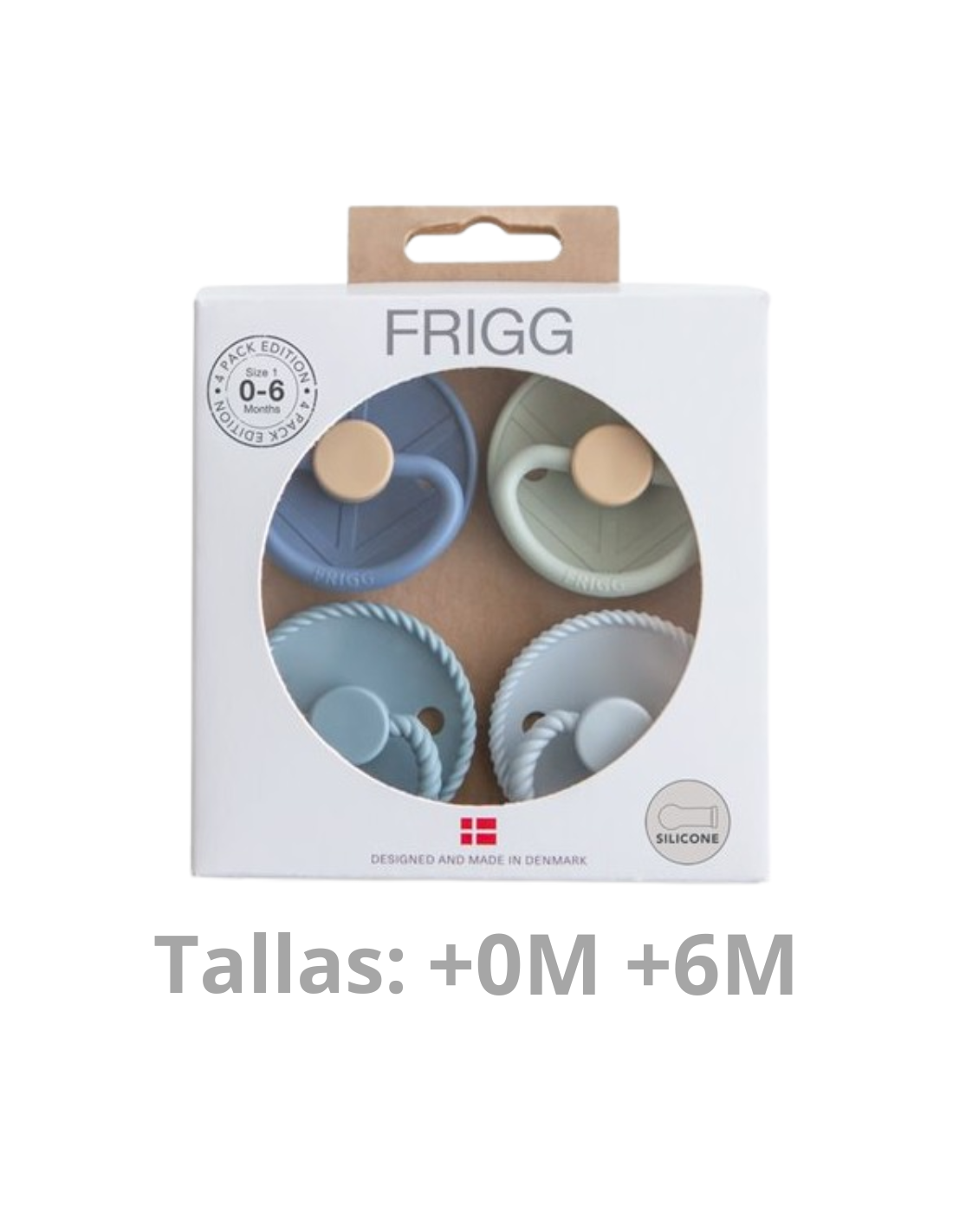 Este pack mixto incluye 4 chupetes FRIGG en tonos serenos y suaves que evocan el cielo al amanecer y el atardecer. Colores que transmiten paz y armonía, ideales para acompañar los momentos más relajantes de tu bebé. Están fabricados con silicona médica de alta calidad, una tetina redonda que se adapta a la forma natural del paladar del bebé, ayudando a calmarlo de manera suave y segura. El escudo ergonómico con orificios de ventilación previene la irritación en la piel y permite una buena circulación del aire.