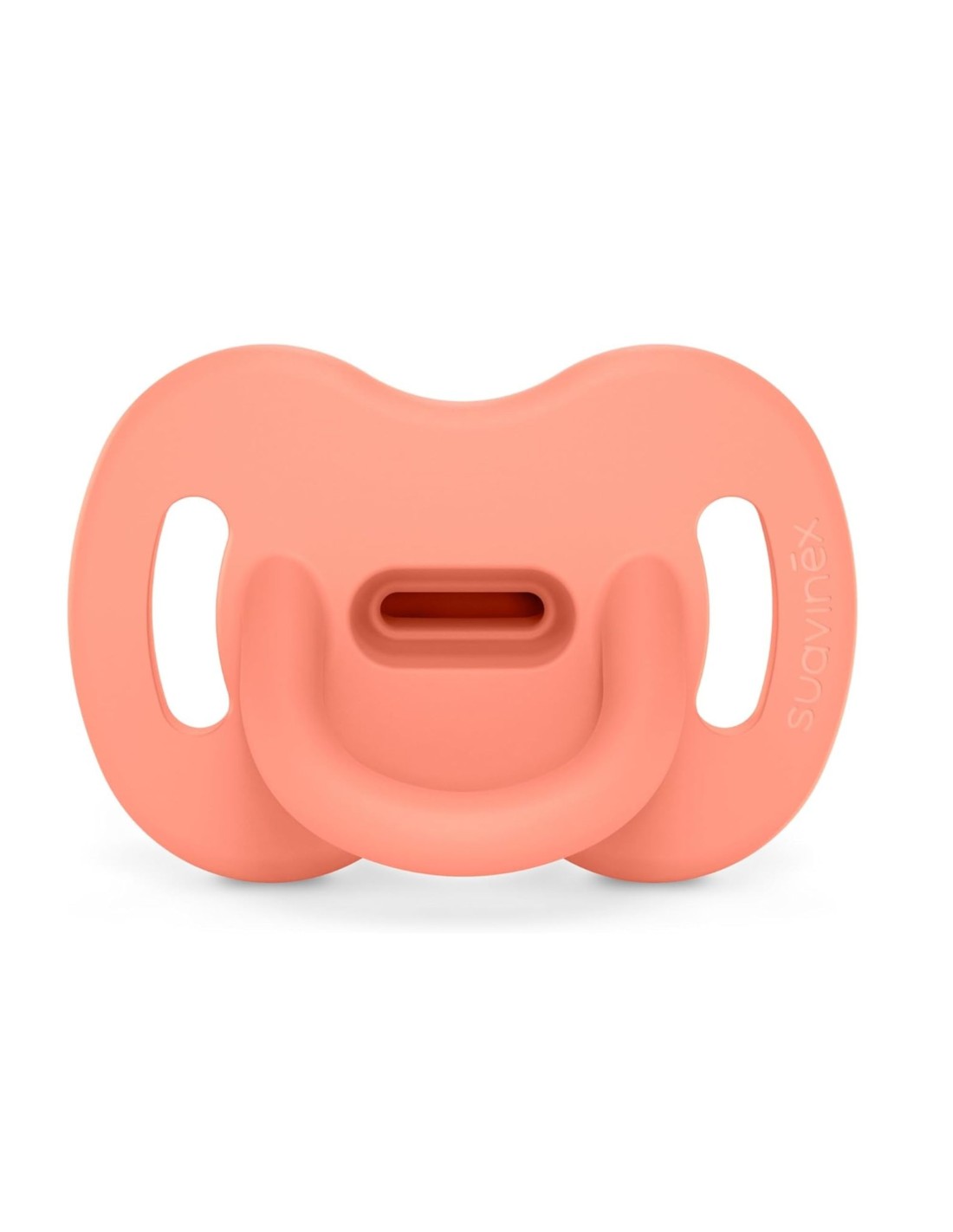 El Chupete Todo Silicona Suavinex es ideal para bebés de 6 a 18 meses gracias a su diseño en una única pieza de silicona médica, suave y flexible.