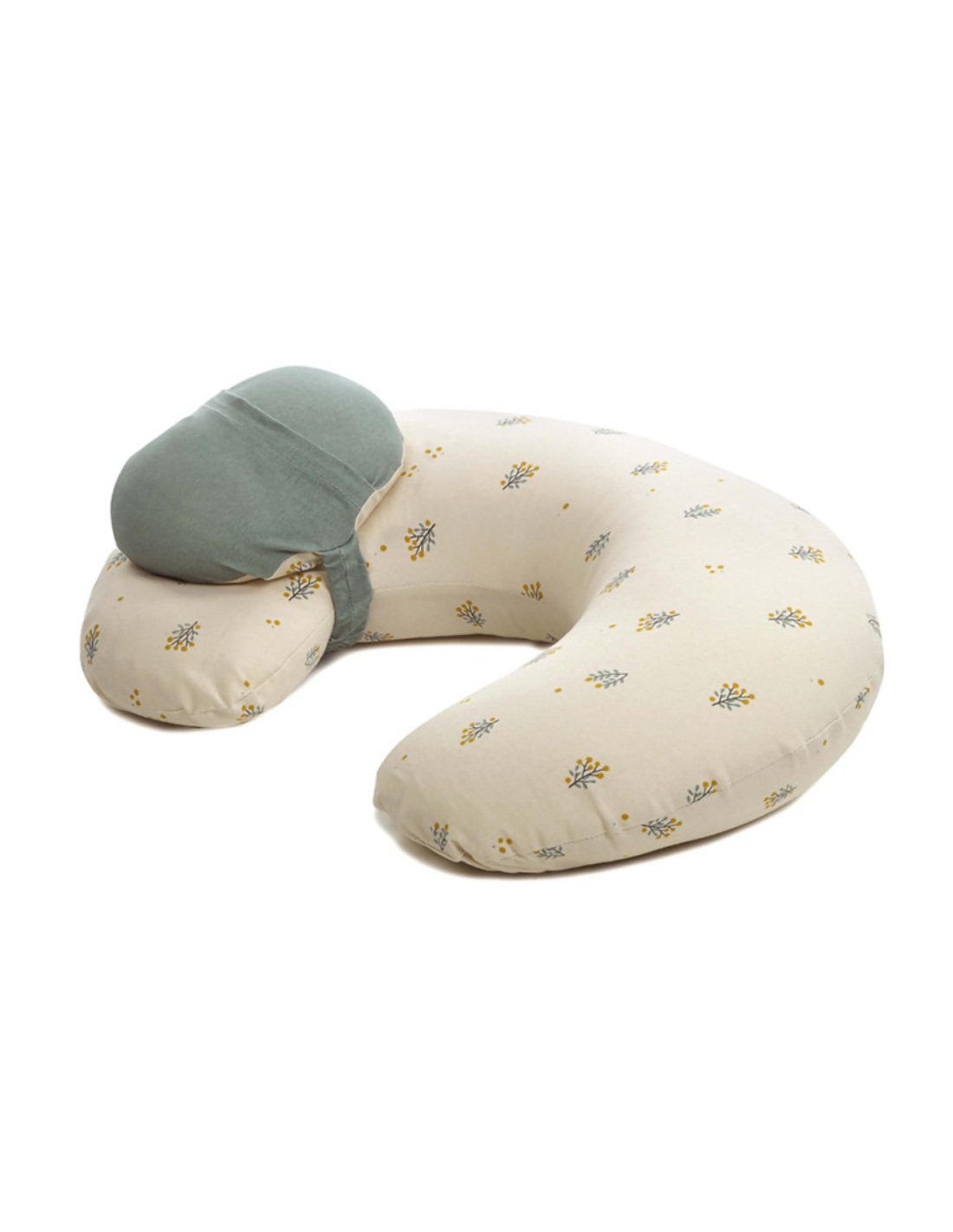 El cojín de lactancia cuenta con una forma ergonómica en forma de “U”, ideal para amamantar o dar el biberón cómodamente. Su relleno de bolitas de microperlas ofrece un soporte flexible y adaptable, que alivia la tensión corporal durante las tomas. También se puede usar como apoyo para el bebé mientras descansa, juega o aprende a sentarse. El diseño en color botanic combina suavidad y estilo. Es un accesorio versátil y duradero, pensado para facilitar el día a día de madres y bebés.