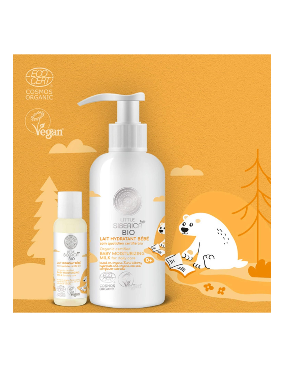 Forma parte de la gama Little Siberica, una línea de cuidado infantil basada en hidrolatos naturales de plantas silvestres de Siberia, con propiedades únicas gracias al clima extremo de la región. Esta leche está certificada por Ecocert Cosmos Organic, es vegana y ha sido formulada sin parabenos, siliconas ni colorantes artificiales.