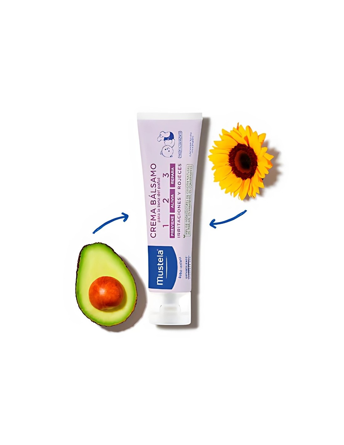 La Crema Pañal Bálsamo 1·2·3 Mustela es un tratamiento completo para proteger la piel del bebé frente a la irritación y la dermatitis del pañal.