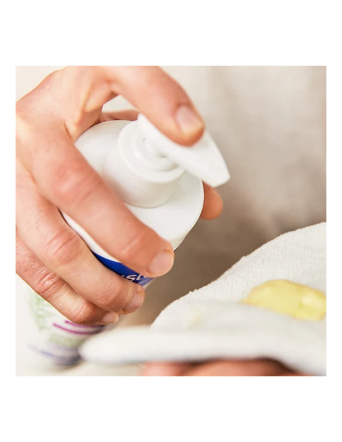 2. Aplicar con un algodón en la zona del pañal hasta eliminar los restos de suciedad.