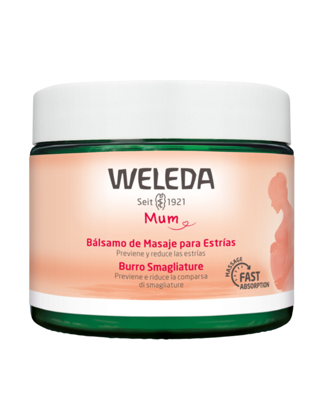 El Bálsamo de Masaje para Estrías Weleda está especialmente formulado para prevenir y mejorar la apariencia de las estrías durante el embarazo, el posparto o etapas de cambio de peso.