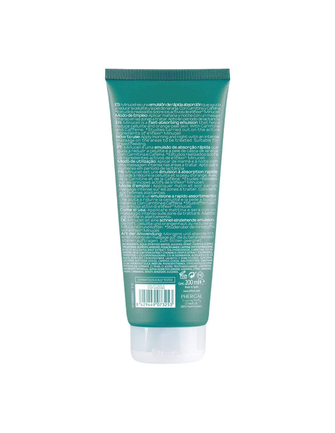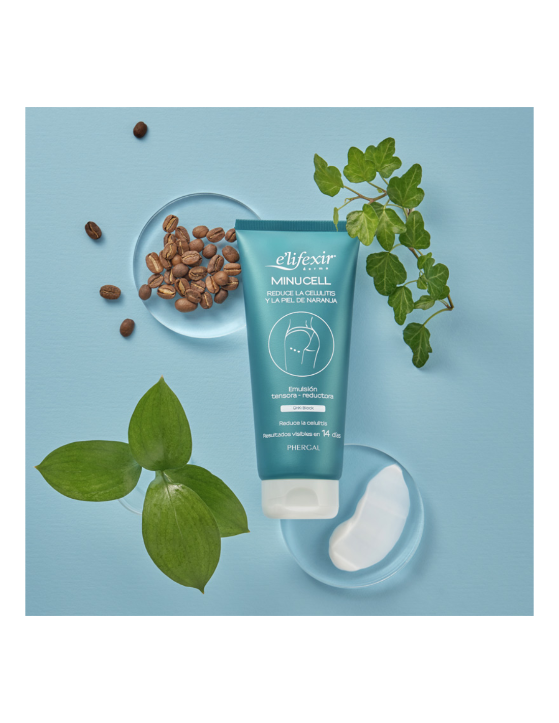 Aqua, Glycerin, Alcohol Denat., Caffeine, Aesculus Hippocastanum Extract, Hedera Helix Extract, Ruscus Aculeatus Root Extract, Menthol, Carbomer, Triethanolamine, Phenoxyethanol, Ethylhexylglycerin, Parfum, entre otros.
