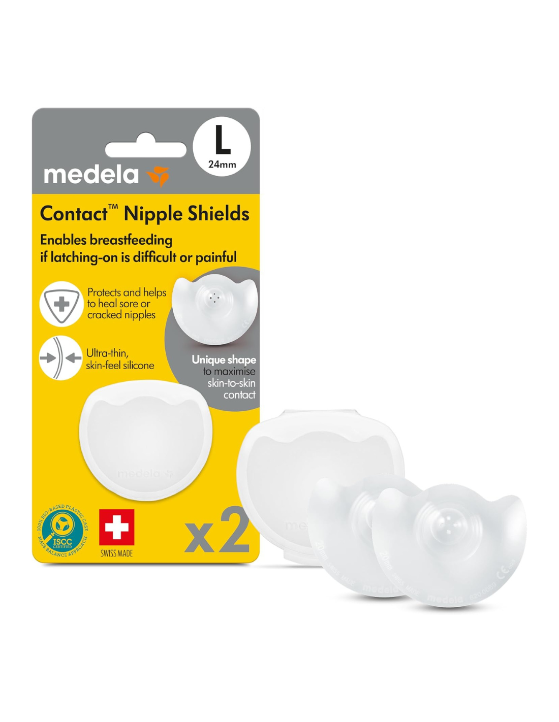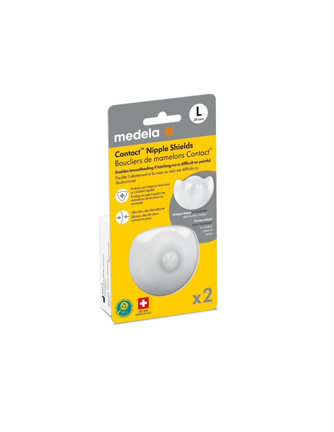 Las Pezoneras Contact de Medela , en talla L (24 mm), están diseñadas para facilitar la lactancia en situaciones donde el agarre del bebé es difícil o doloroso, o cuando la madre presenta pezones planos, invertidos o sensibles. Fabricadas con silicona suave, ultrafina y transparente , estas pezoneras protegen los pezones durante la lactancia y ayudan al bebé a succionar en la posición correcta. Su forma especial maximiza el contacto piel con piel, permitiendo que el bebé perciba el olor familiar de la madre, lo que favorece una experiencia de lactancia más natural. Además, vienen en un práctico estuche para su almacenamiento y transporte, garantizando higiene y comodidad en todo momento.