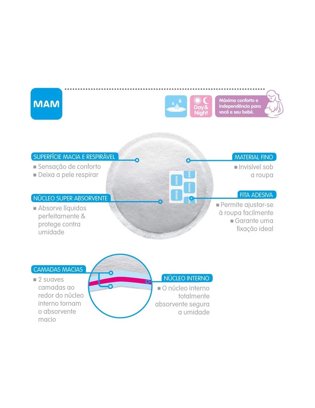 Para usar los discos de lactancia MAM Baby , retire la cinta que protege la tira adhesiva y colócalo en el sostén, presionando ligeramente para asegurar su fijación. La capa absorbente debe estar en contacto directo con el pezón . Cada disco es de un solo uso y debe desecharse después de su utilización.