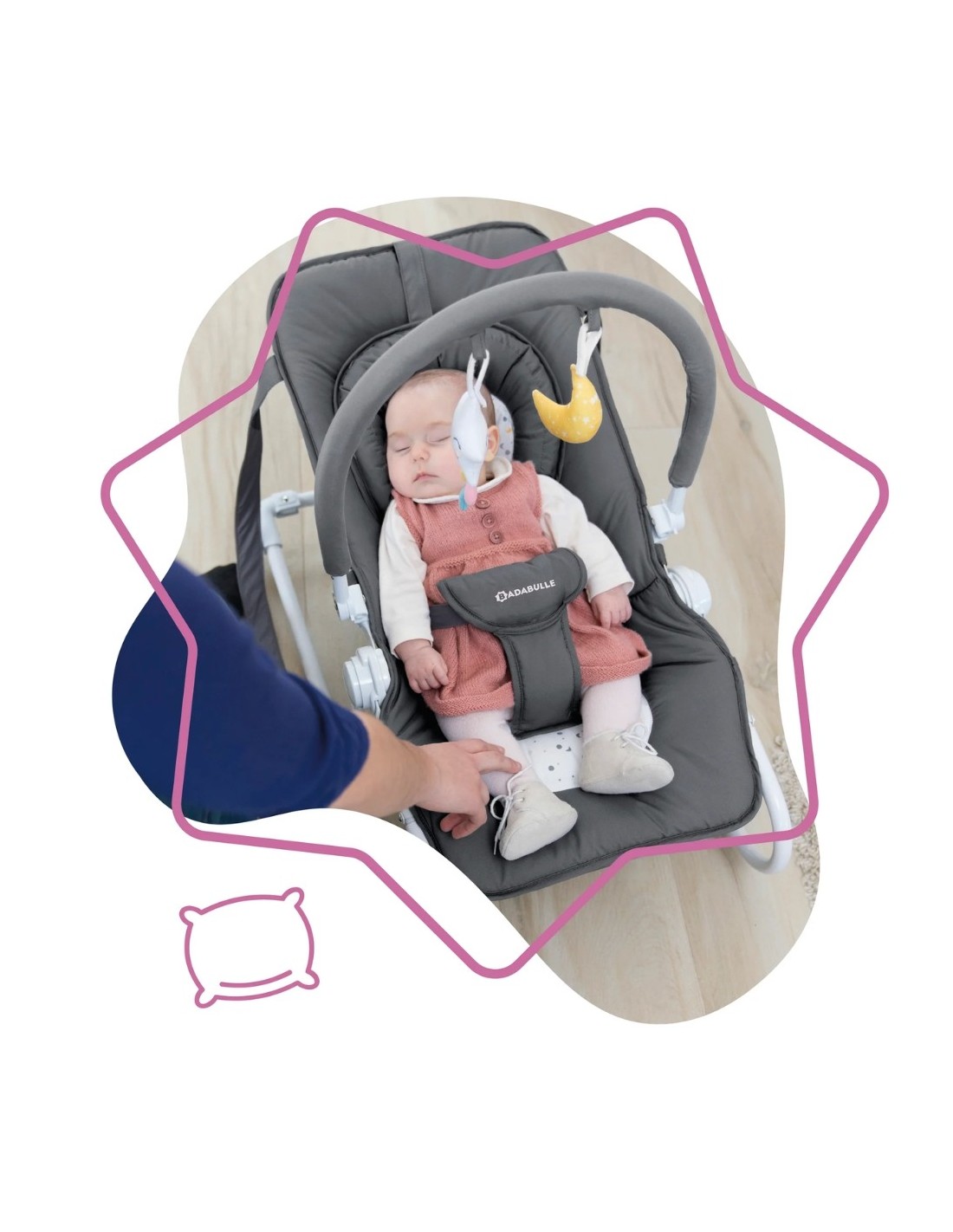 La Hamaca Plegable Buddy Badabulle es la solución perfecta para combinar comodidad, relax y practicidad en el día a día del bebé. Con un respaldo reclinable en varias posiciones y un asiento mullido, proporciona el máximo confort tanto para descansar como para jugar. Su estructura ligera y su sistema de plegado rápido la hacen ideal para usar en casa o llevar de viaje.