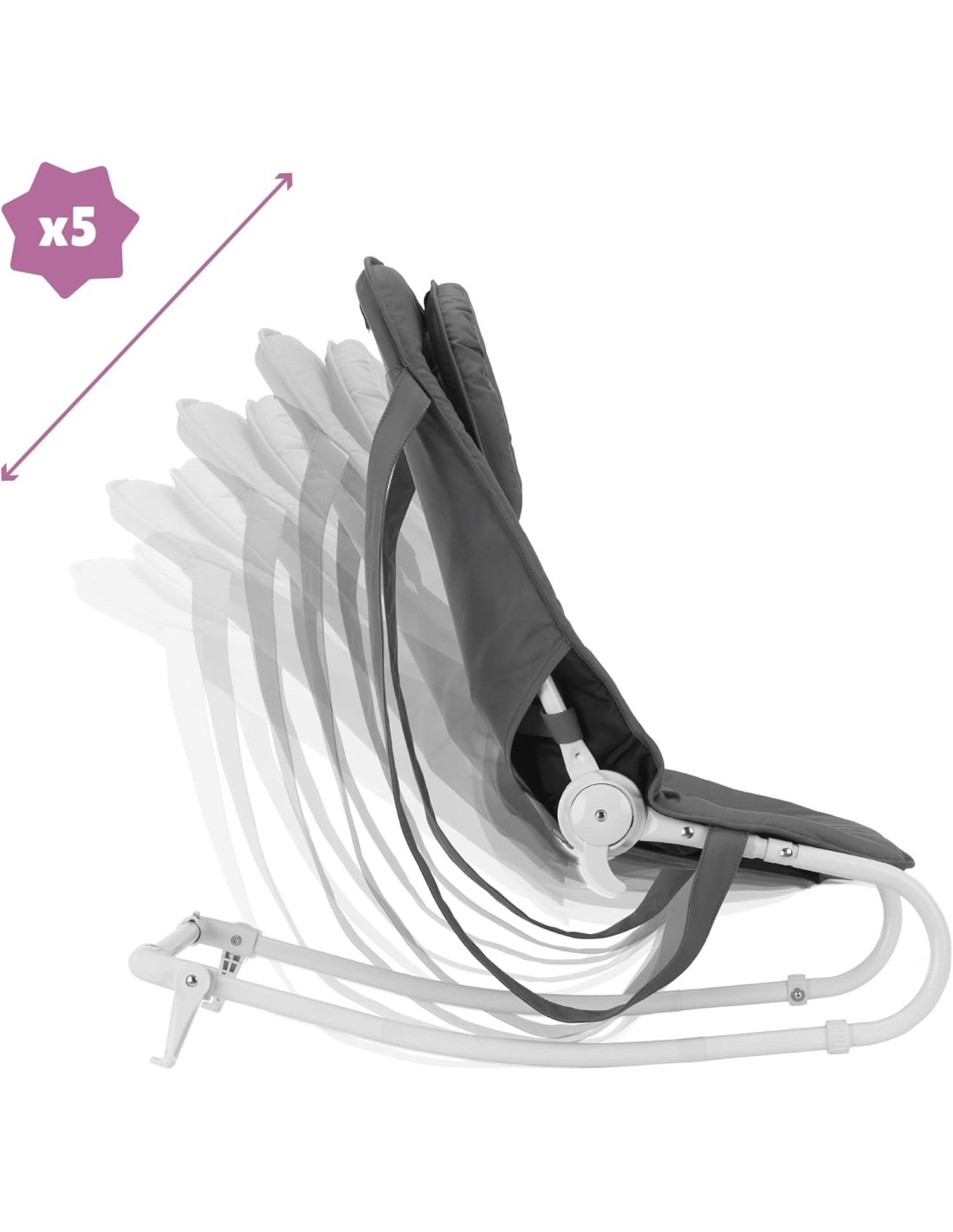 - Respaldo reclinable en 5 posiciones: Se ajusta fácilmente para adaptarse a cada momento, desde la siesta hasta el juego.